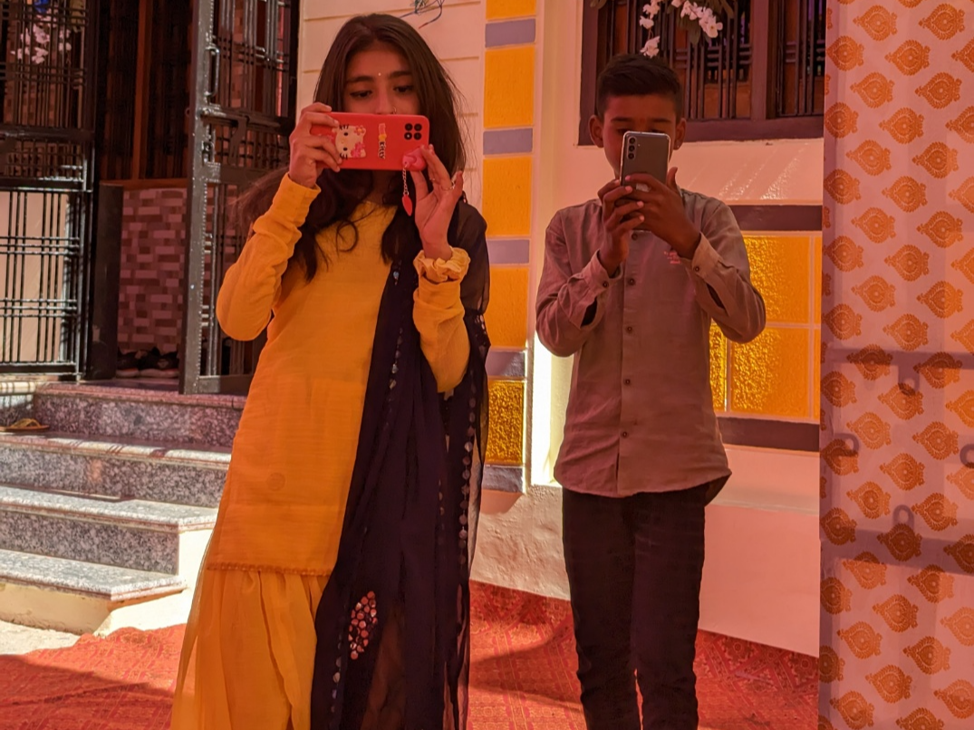 가족 친척들과 기념사진도 찍습니다. 사진을 본 많은 사람들이 딸이냐, 일부다처제냐 하는데 그렇지 않습니다. 엄격한 힌두교 가문이라 오히려 그런 것과는 거리가 멀고, 사진에 있는 아이들과 여자분들은 다 친척입니다.
