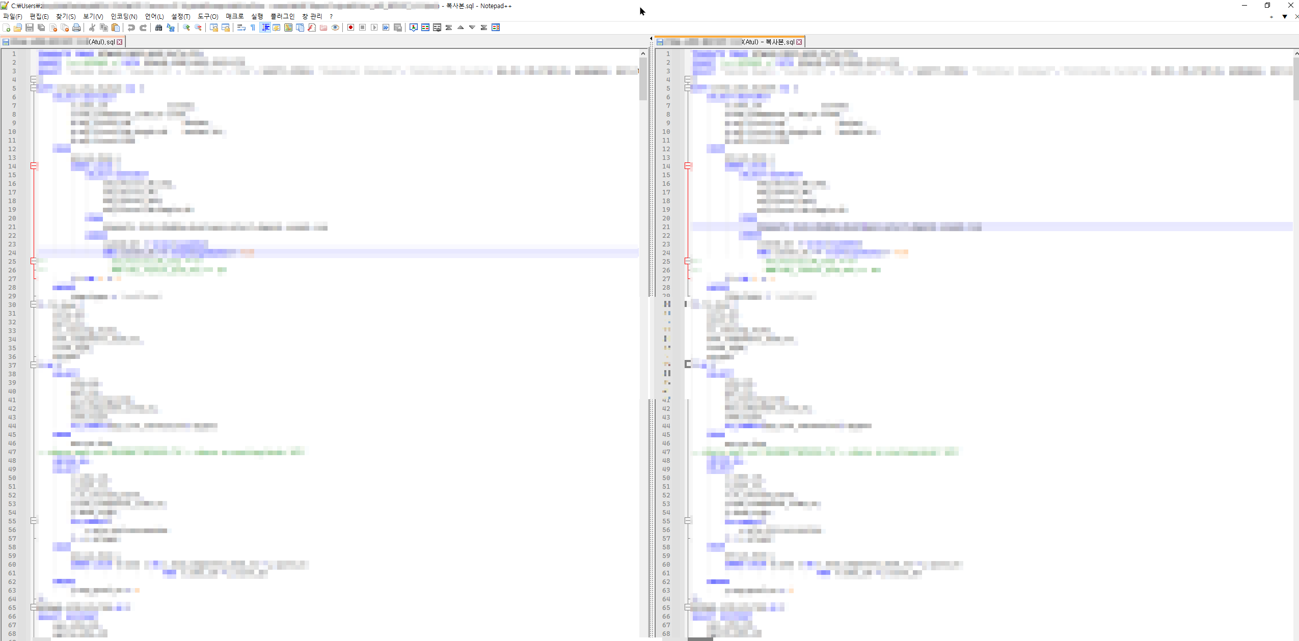 저는 주로 노트패드++를 DB 스크립트 작성할 때 데이터 소스를 바꾸는 경우에 많이 사용합니다. 이때, 같은 스크립트 두 개를 띄워두고 한쪽은 원본 유지용으로 쓰고, 한쪽은 수정하는 용도로 씁니다.