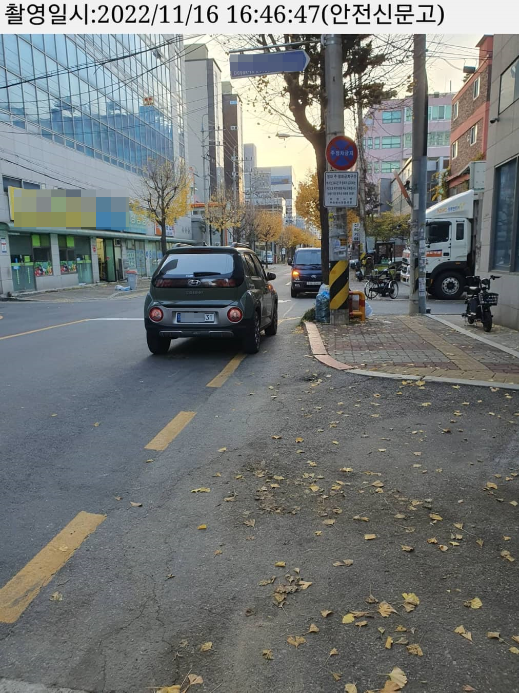 도로 상황에 따른 불법 주정차 - 신고 대상이지만 사진을 정확히 찍어야 함