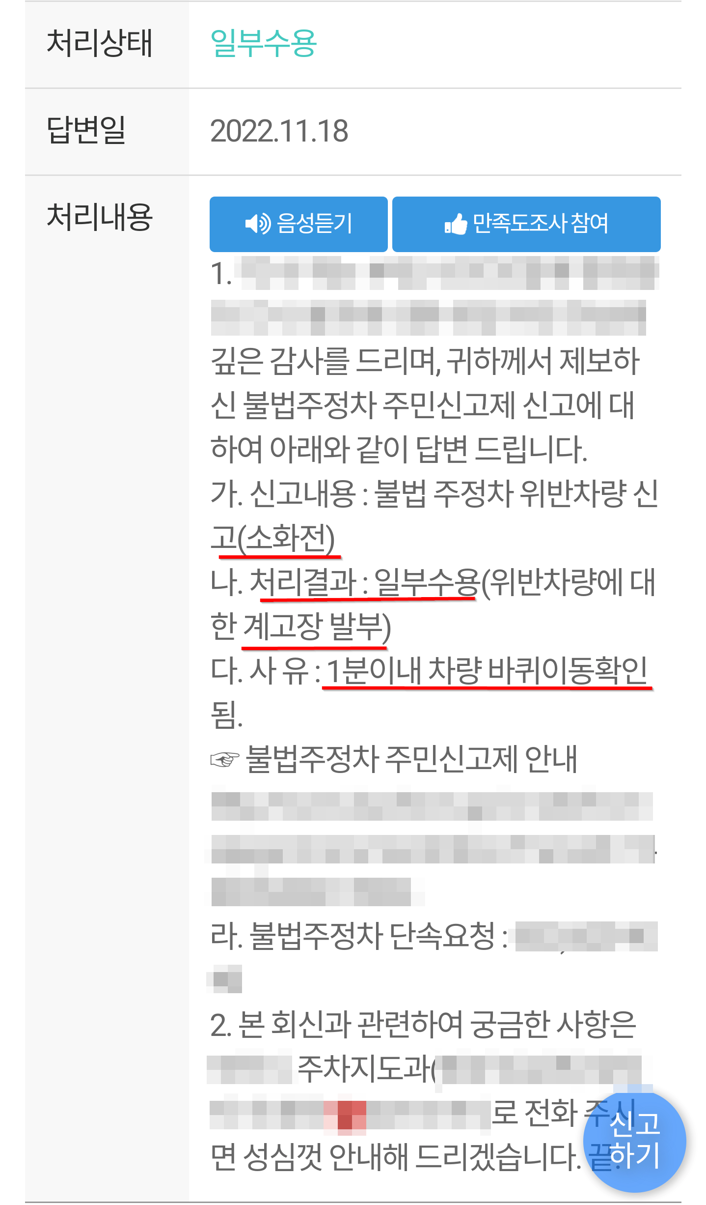 - 과태료 부과 된 신고 내역