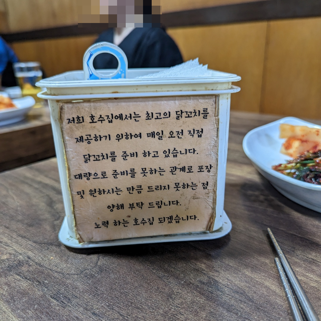 약 10년 전에 방문했다가 오랜만에 다시 한번 호수집을 방문해 닭도리탕과 닭꼬치를 먹고 왔습니다. 올바른 표기법은 '닭볶음탕'이 맞지만 이 포스팅에서는 가게에 쓰인 표기인 '닭도리탕'으로 명시하겠습니다.
