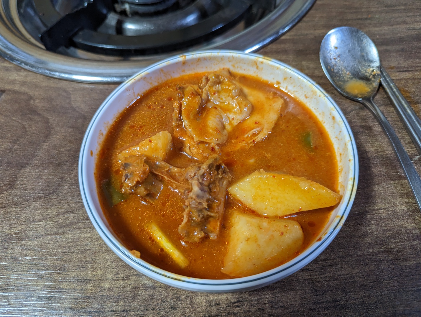 다만 가격이 저렴해서인지 닭도리탕의 메인인 닭의 사이즈가 작고 반마리만 들어간 것 같았습니다. 날개랑 다리가 한쪽씩만 있었기 때문에 일단 추측은 반마리라고 생각 중입니다. 추측이 맞다면 아마 소, 중, 대, 특대가 각각 반마리, 한 마리, 한 마리 반, 두 마리일 것 같습니다.
