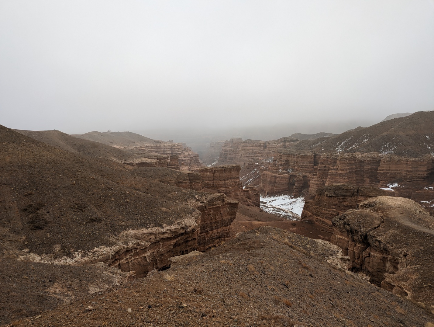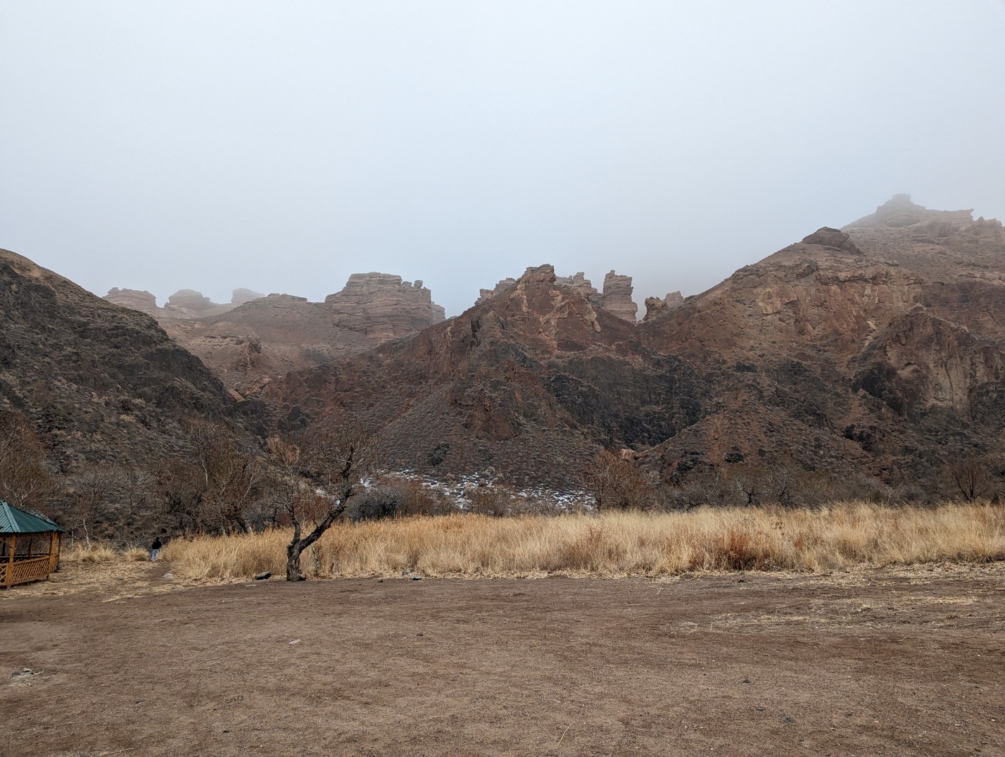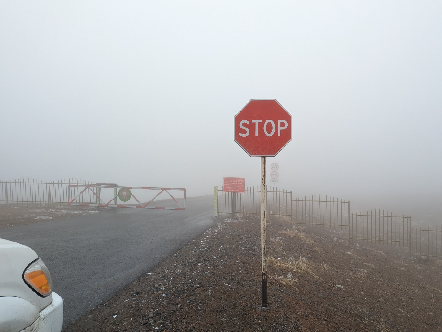 그러나 어째 갈수록 안개가 심해지더니 바로 앞도 이렇게 거의 안 보이는 수준이 되었습니다. 챠른캐년 입구는 국경지대 같이 생겼습니다.