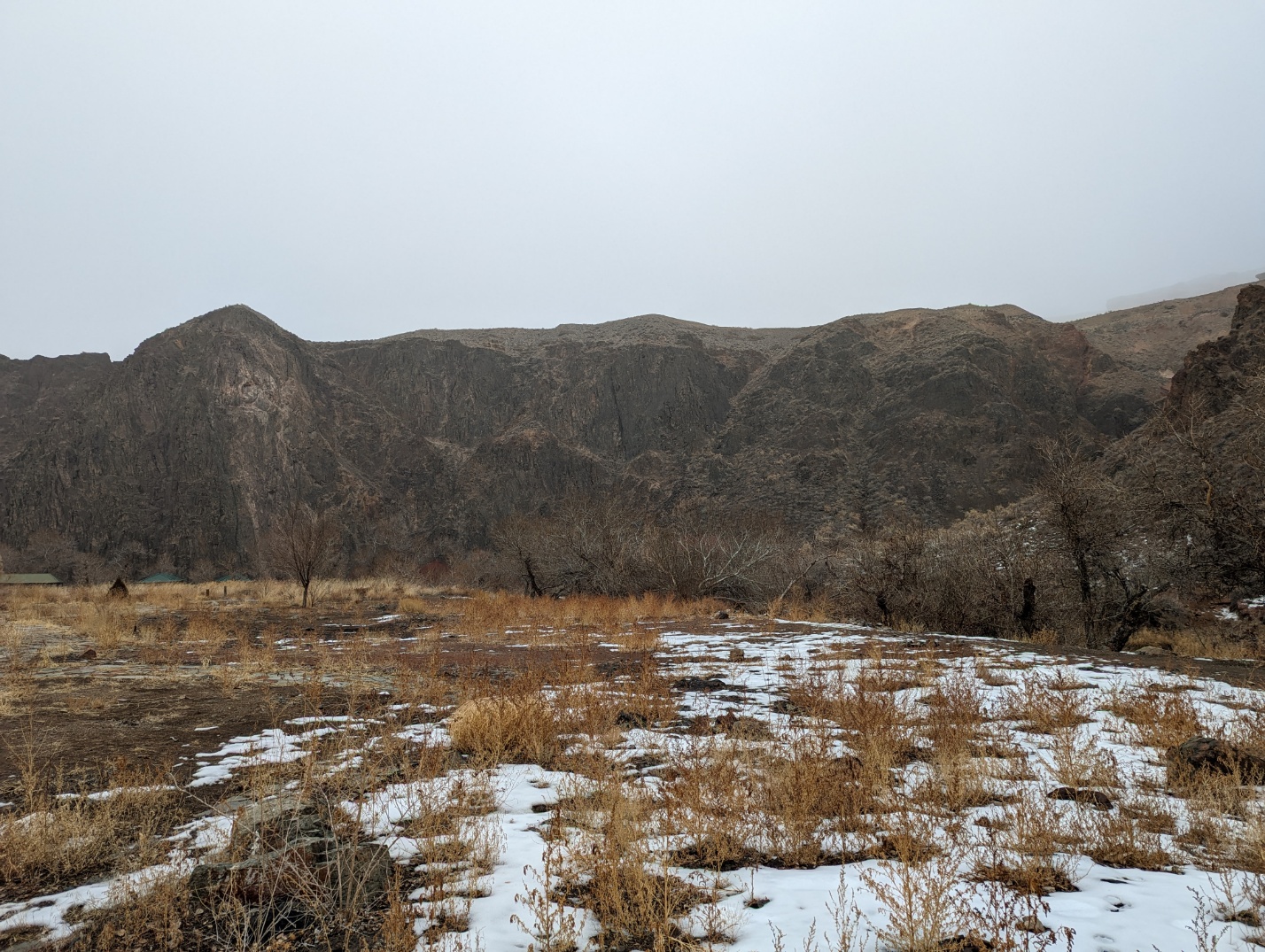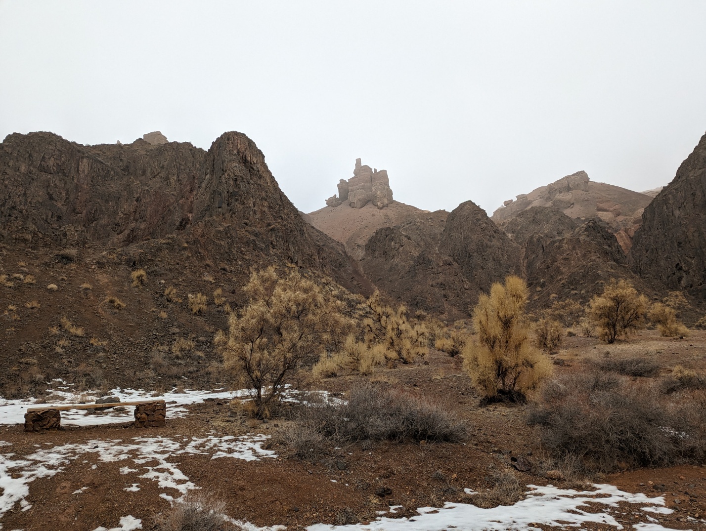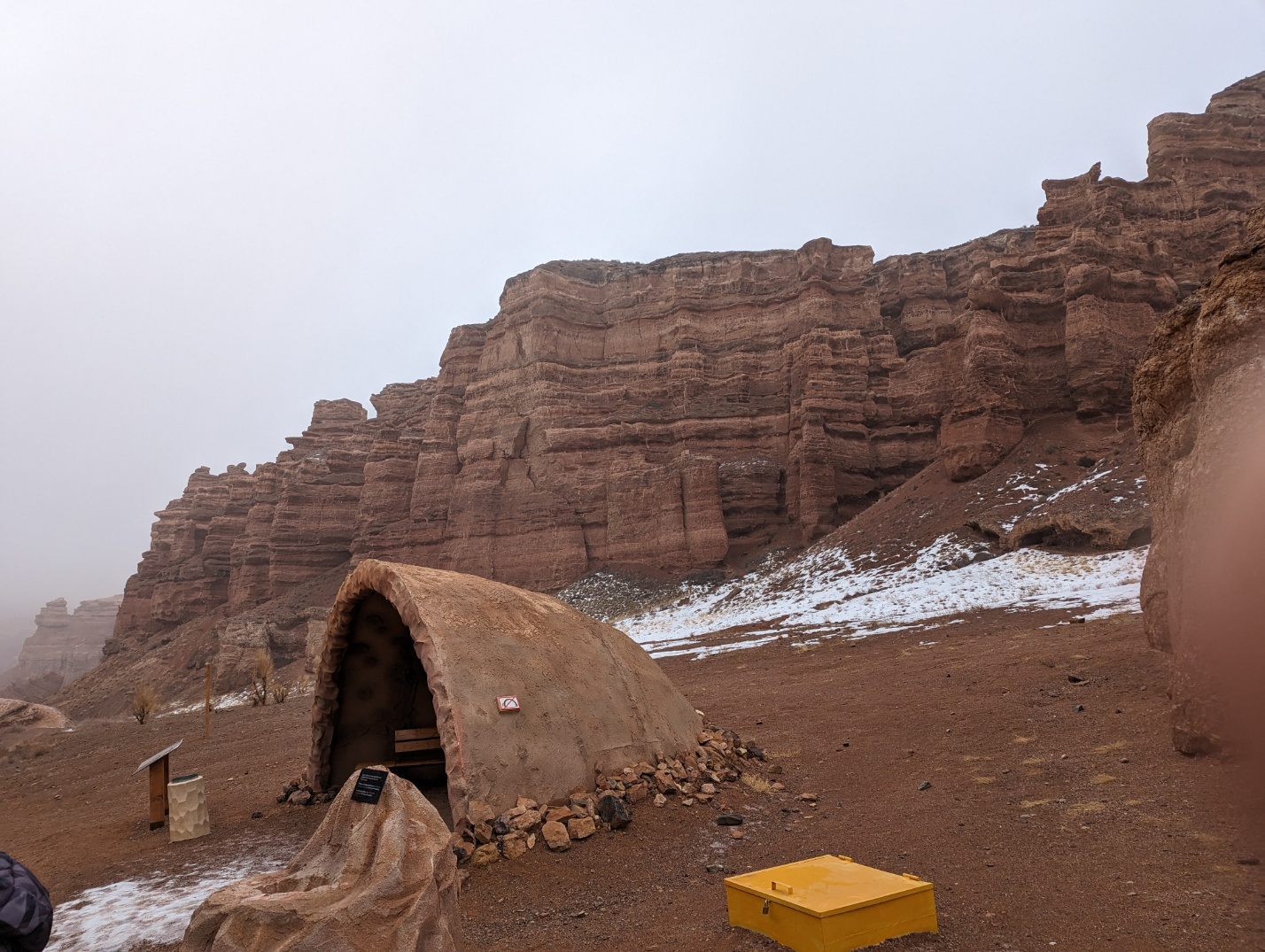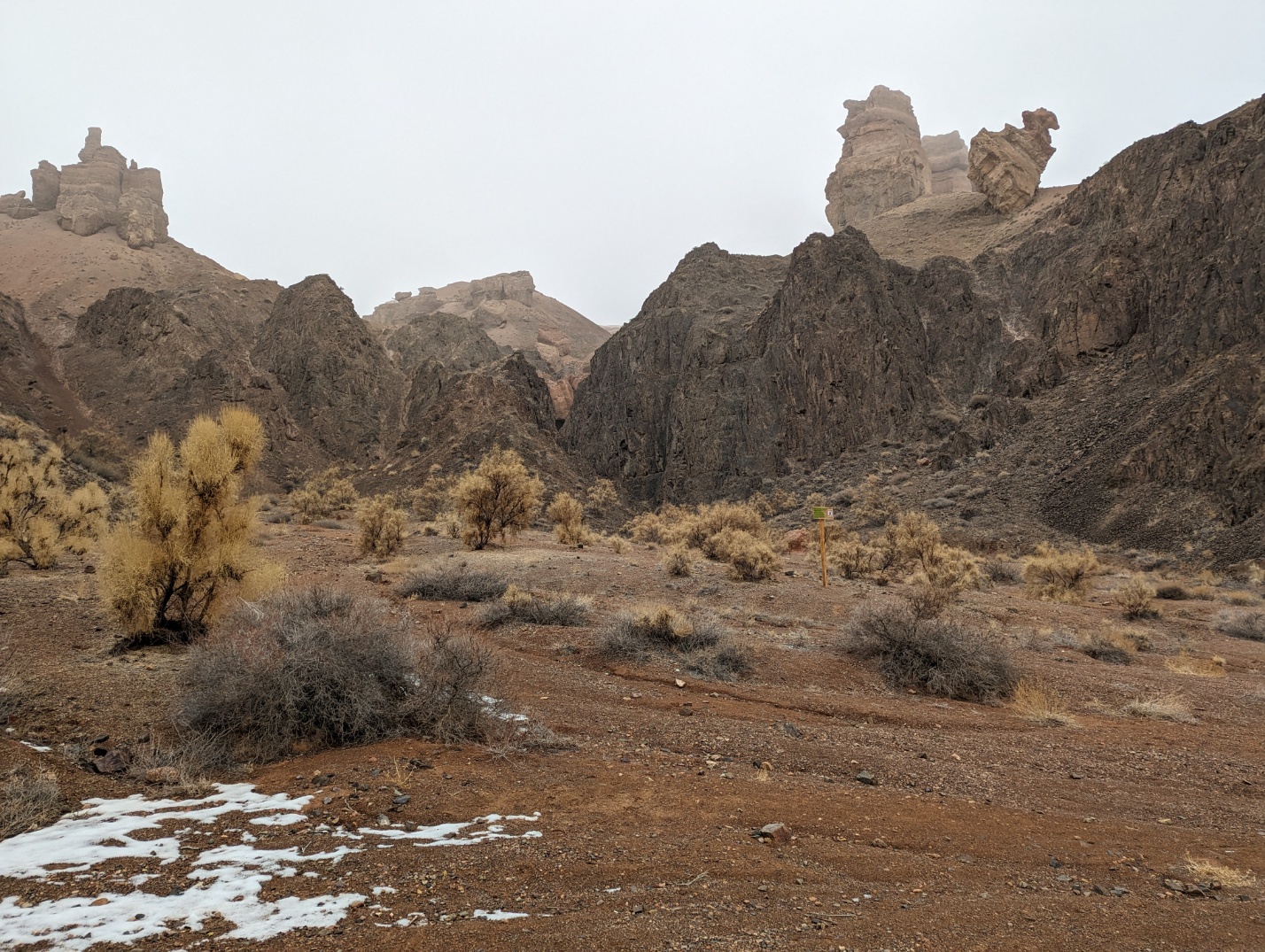 그러나 어째 갈수록 안개가 심해지더니 바로 앞도 이렇게 거의 안 보이는 수준이 되었습니다. 챠른캐년 입구는 국경지대 같이 생겼습니다.