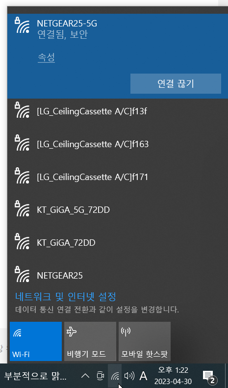 드라이버를 설치하고 나면 이렇게 와이파이와 블루투스가 인식되는 것을 확인할 수 있습니다. 이제 노트북처럼 편하게 와이파이와 블루투스를 사용하면 됩니다.