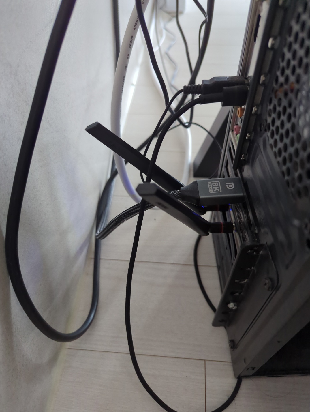 이제 전원선을 무선랜카드와 메인보드에 연결해 주면 됩니다. USB라고 쓰여있는 곳에 꽂으면 되는데, 이때 제공된 선과 맞는 구멍이 하나밖에 없을 거라 쉽게 찾으실 겁니다. 여기까지 하면 메인보드에 설치는 끝입니다.