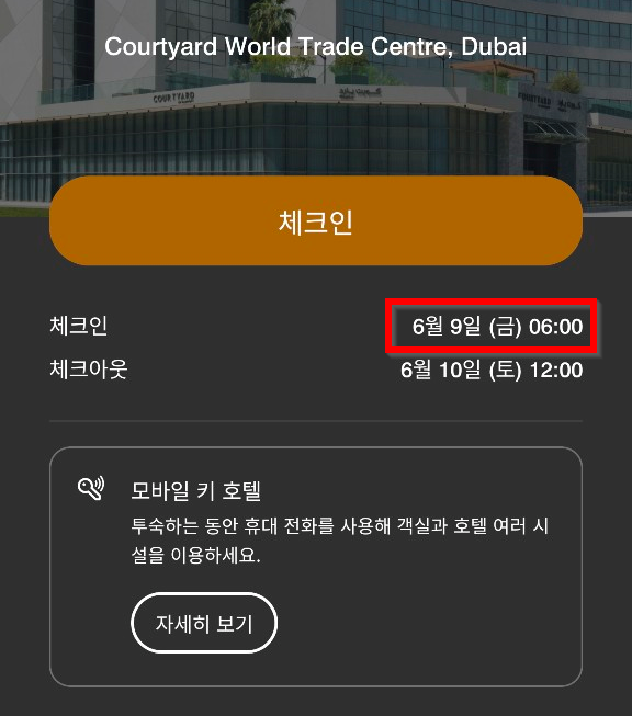 두바이 도착 시간이 오전 6시 25분이었는데, 비행기 타기 전에 앱에서 체크인 정보를 확인해 보니 오전 6시로 변경되어 있는 것을 확인했습니다.