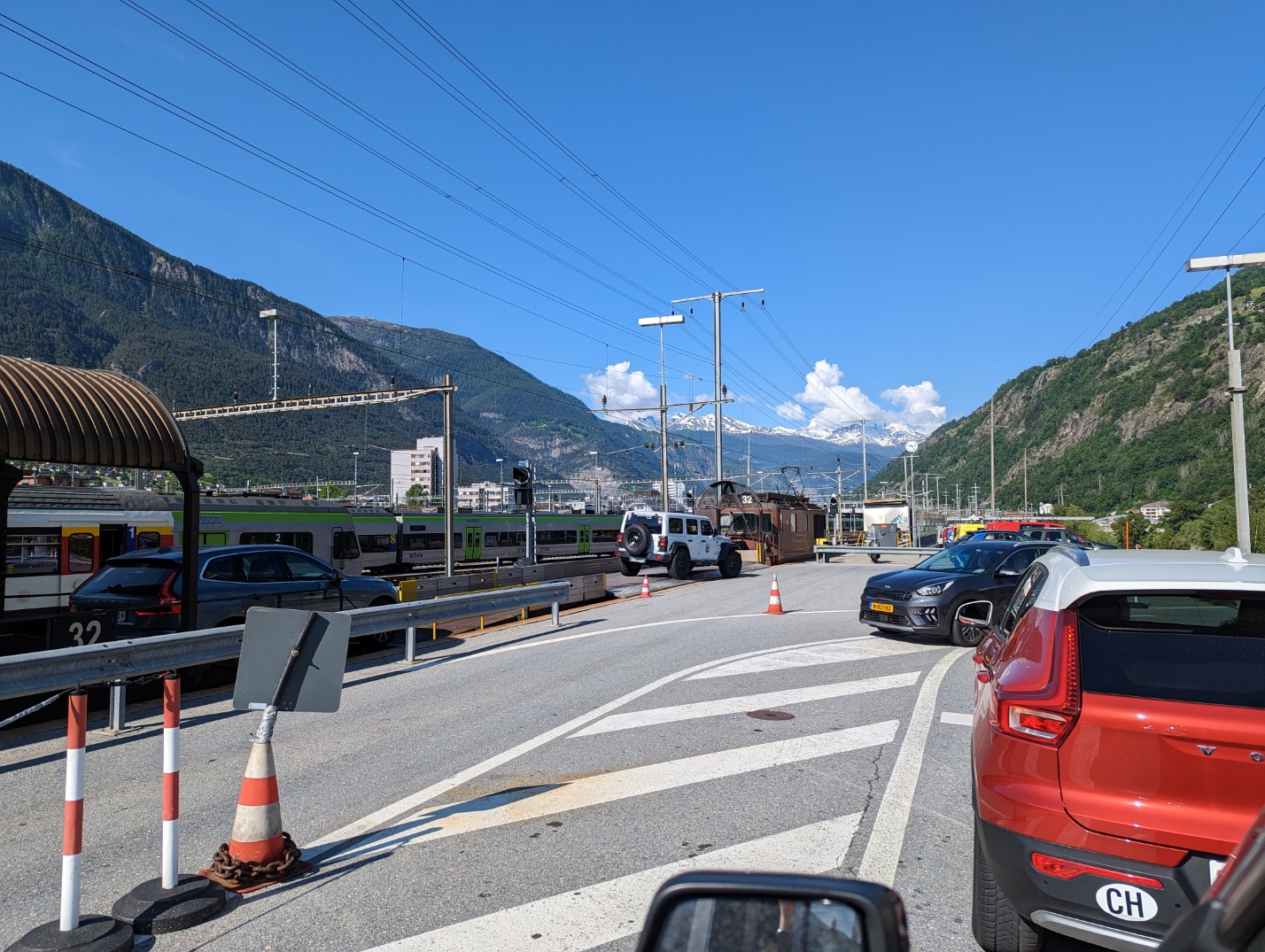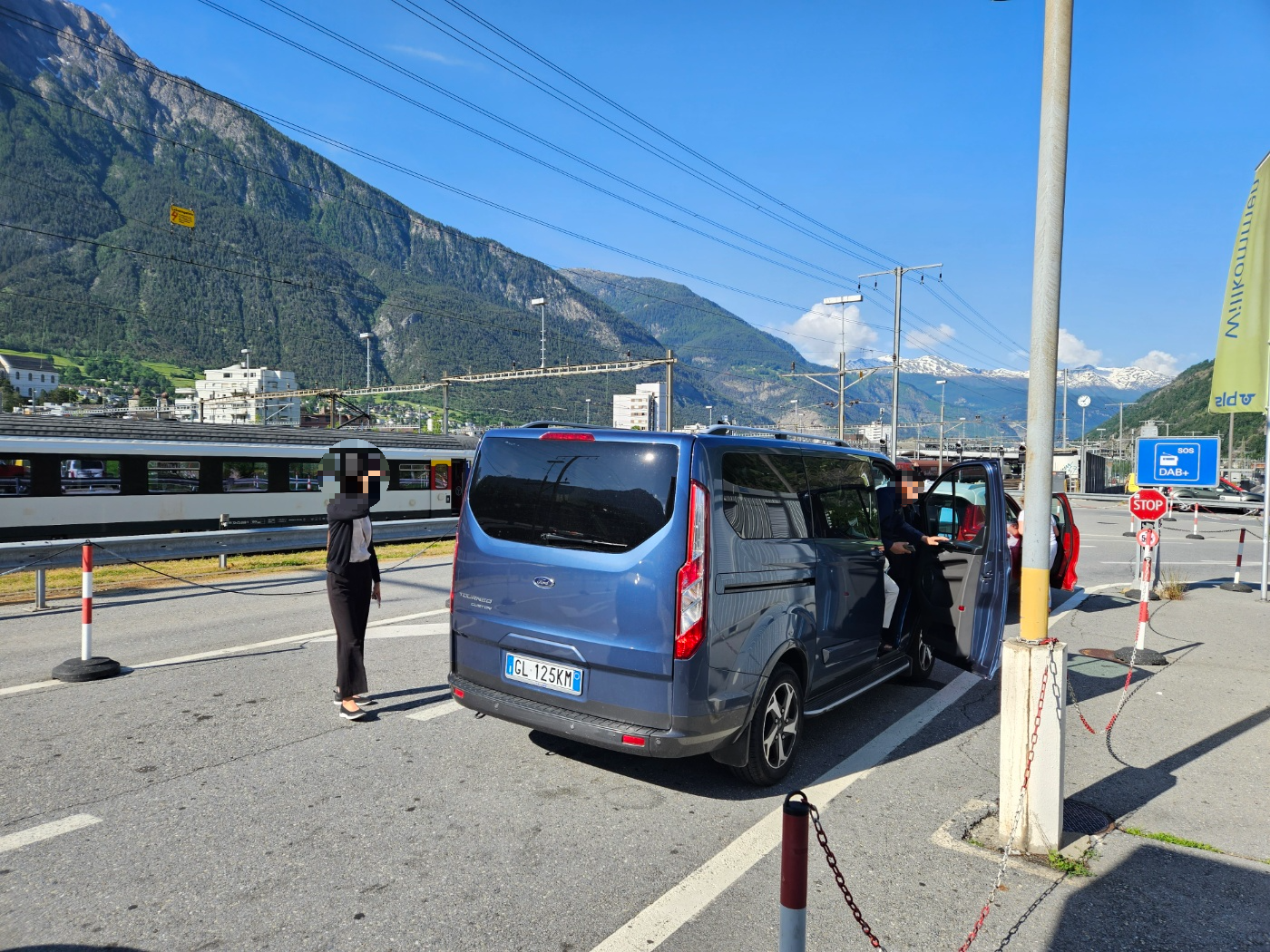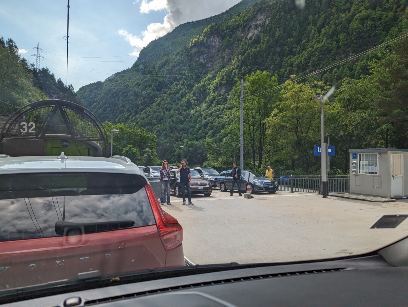20분 정도를 달리고 나면 도착지인 Iselle역에 도착합니다. 이곳에도 스위스로 가기 위한 차들이 기다리고 있습니다. 차에 내리면 이탈리아 경찰들이 대기하고 있고, 간단한 신분 확인을 합니다. 운전자인 저만 여권을 보여주면 됐었고 세관에 신고할 것이 있는지 물어보는 게 다였습니다.