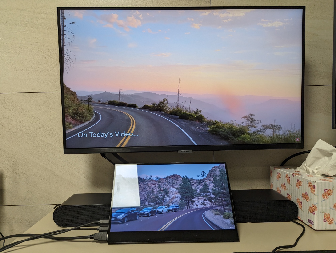 터치를 사용해본 모습입니다. 터치 작동은 잘 되는데, PC에 연결해서 사용시 포터블 모니터를 주모니터로 설정해야 터치가 원하는 대로 작동하는 것은 단점이라 할 수 있습니다. 혹시 그렇게 설정하지 않고도 할 수 있는 방법을 아시는 분이 있으면 알려주세요!