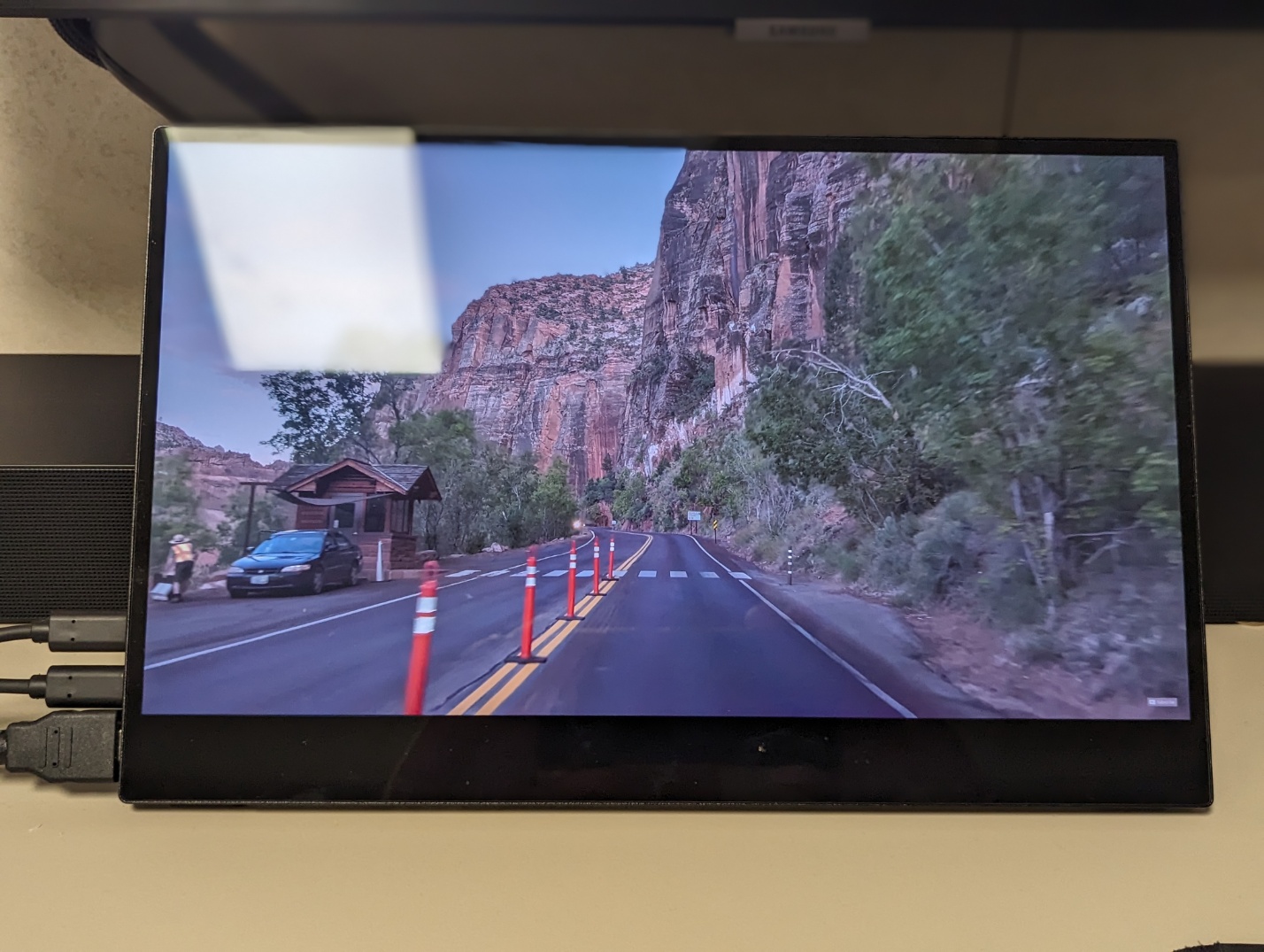 화면이 반사 코팅이 없는 유리이기 때문에 형광등 아래에서 사용하면 글레어 현상이 있습니다. 사진처럼 사용하지 못할 정도는 아닌데 사진이 좀 과하게 나온 점이 있긴 합니다. 많이 불편하면 태블릿이나 노트북 용 필름을 붙여서 해결하면 좋을 것 같습니다.