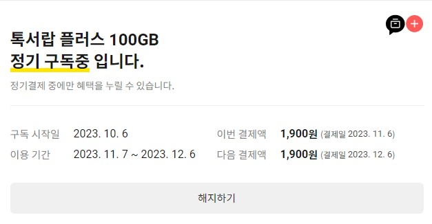 - 톡서랍 설정 -> 나의 구독정보 -> 해지
