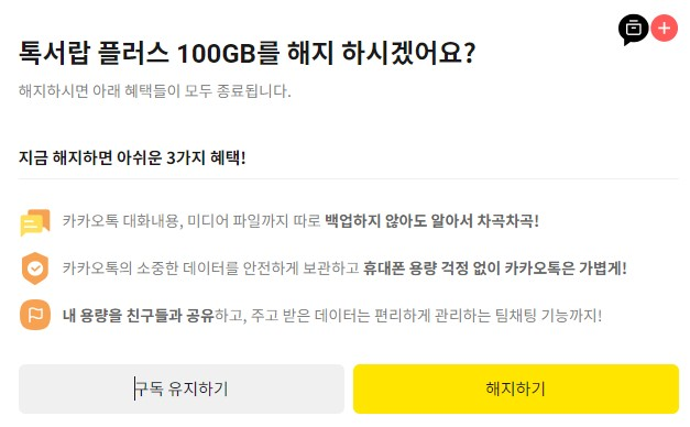 - My 구독 -> 구독중인 상품 -> 톡서랍 플러스 -> 해지하기