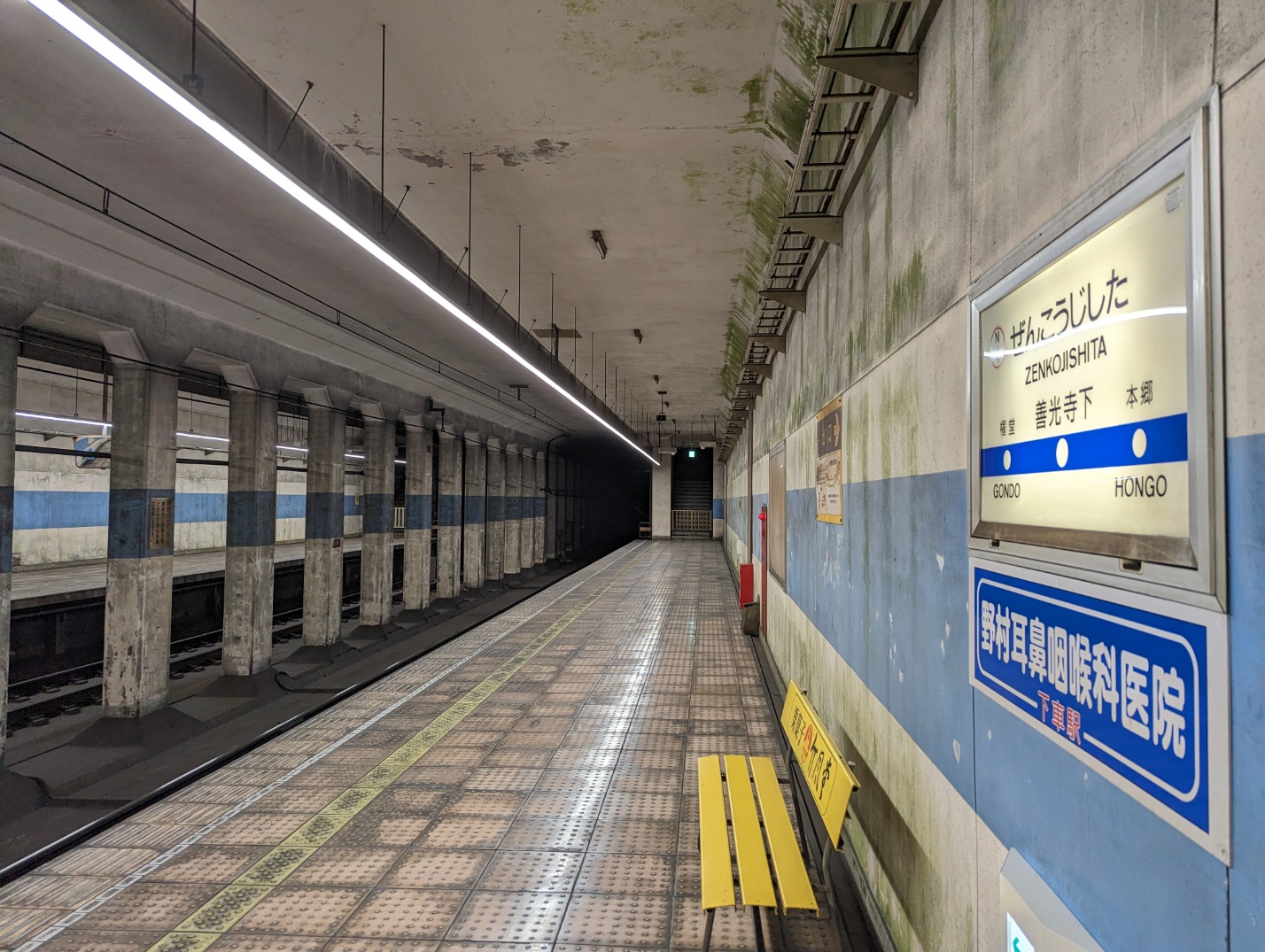 젠코지시타역에 내리는 사람이 거의 없었습니다. 그리고 지하철역에서 우리나라 90년대 2, 3호선 같은 느낌을 그대로 받을 수 있었습니다.