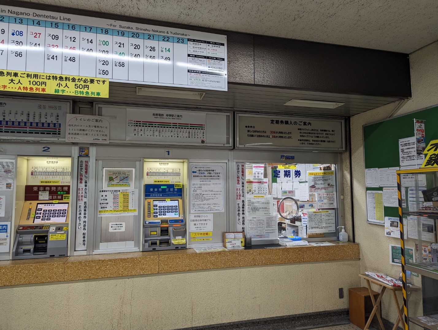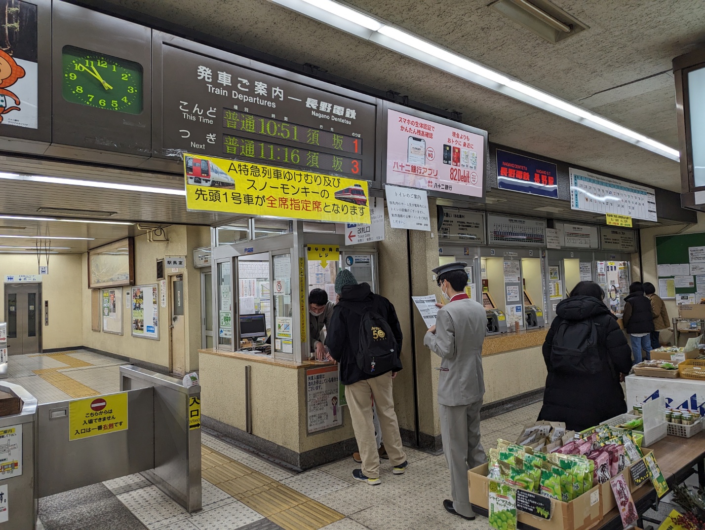 Nagano Dentetsu Line을 따라가서 티켓 부스로 가면 됩니다.