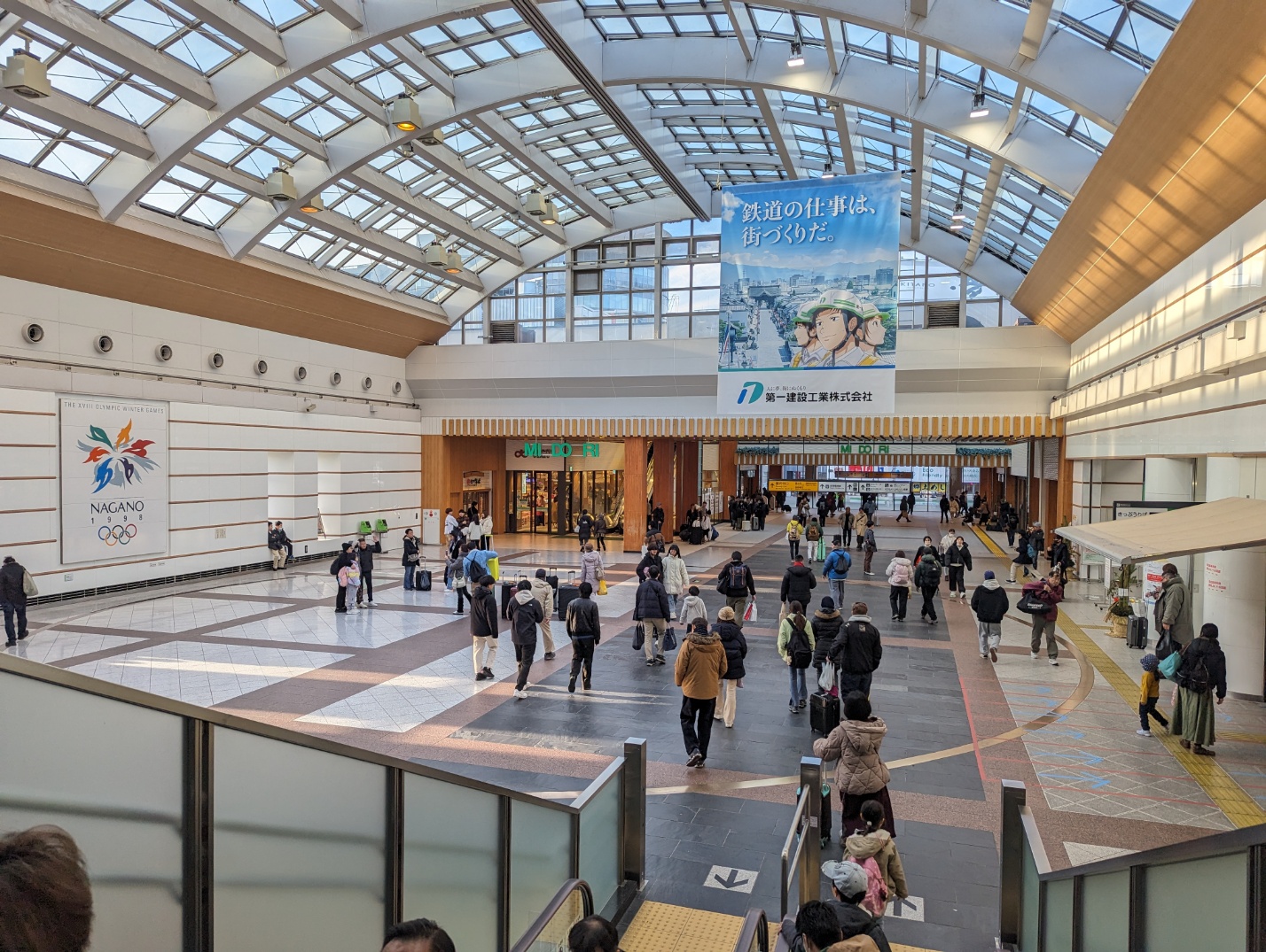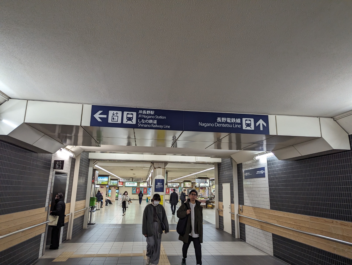 나가노역에서 신칸센에 내려 승차장을 빠져나오면 오른쪽에 투어 인포메이션과 내려가는 에스컬레이터가 있습니다.