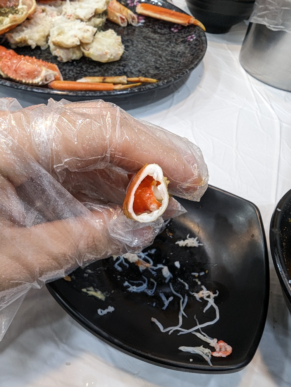 그래도 집게 부분처럼 수율이 괜찮았던 부분들도 있었습니다. 전반적인 맛은 그냥 우리가 아는 대게 맛입니다.