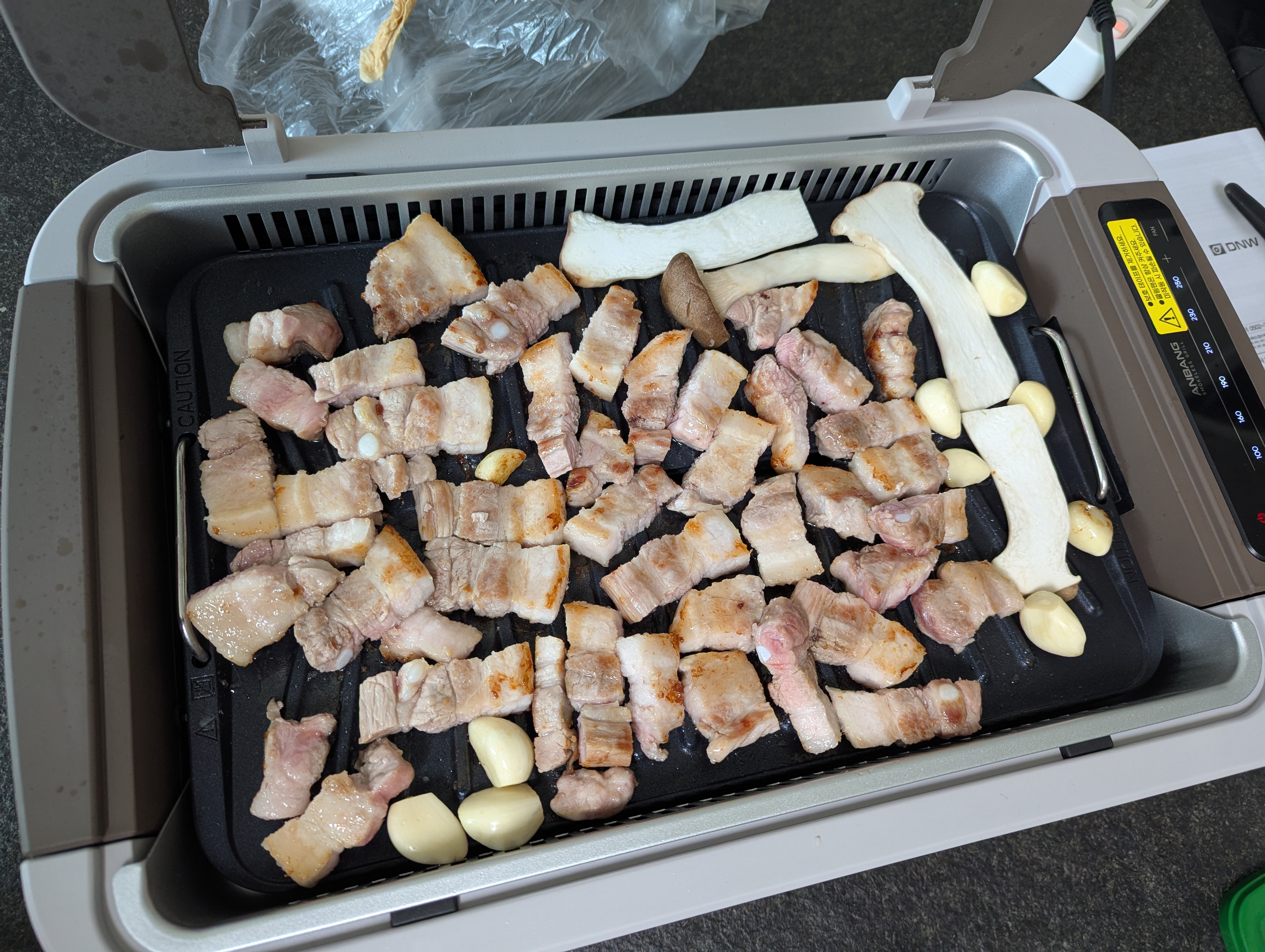 - 전기 그릴 치고 화력이 강력하고, 고기가 빨리 익음