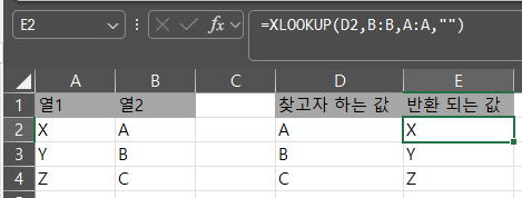 이때, xlookup은 열 순서 상관없이 똑같이 vlookup을 수행할 수 있게 해 줍니다.