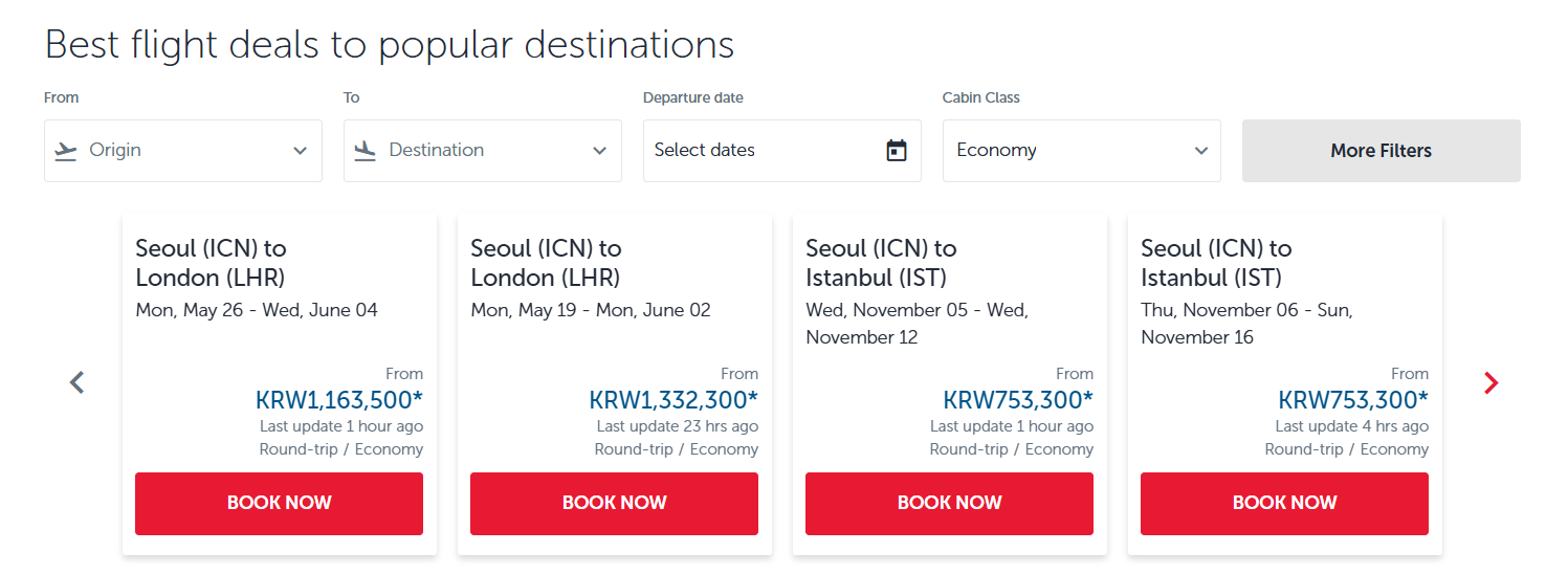 더 많은 도시의 특가항공권 정보는 터키항공 공식 홈페이지에서도 확인 가능합니다.
