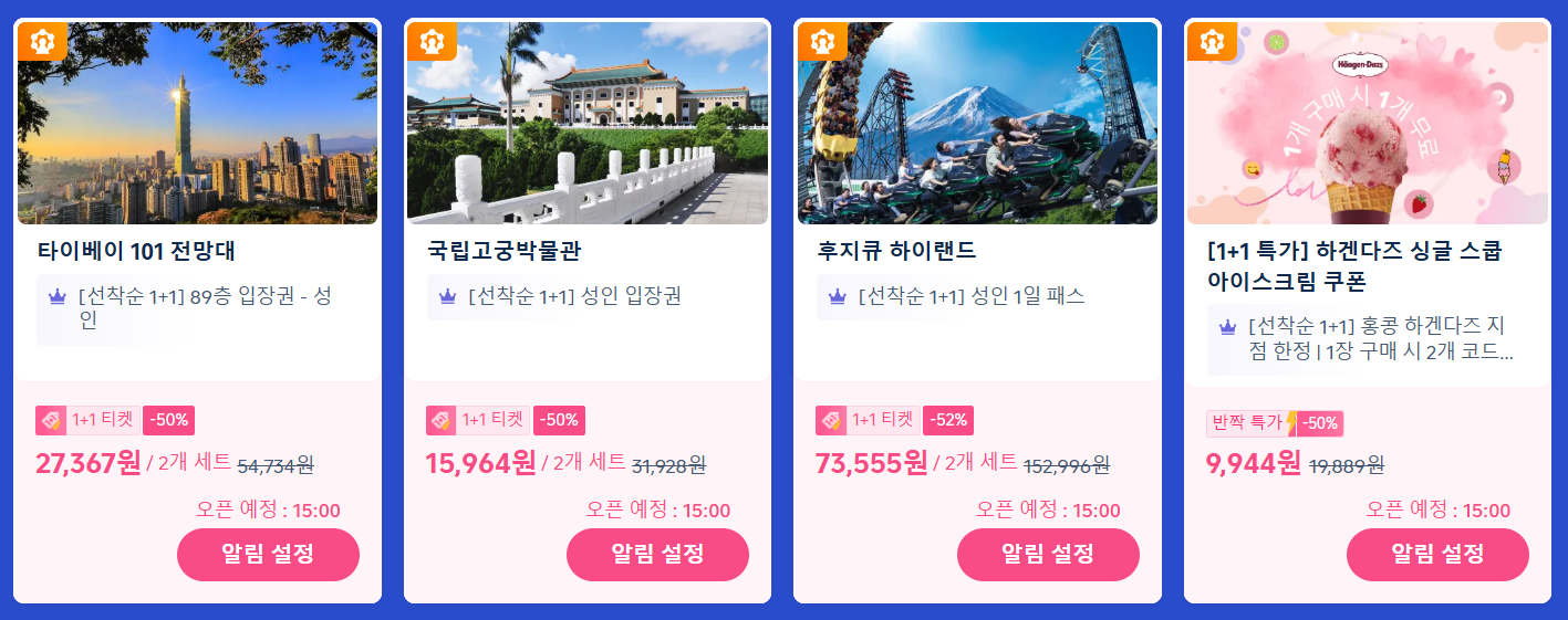 [테마파크 입장권] 오후 3시 선착순 (주요 1+1 상품)