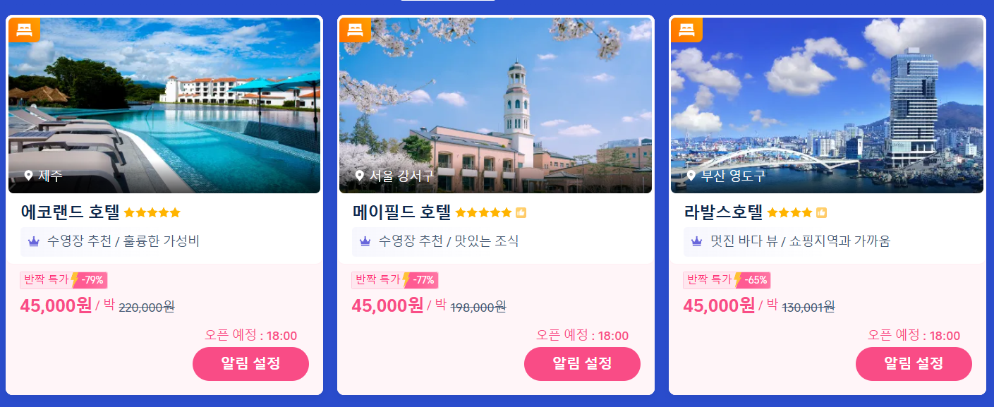 - 호텔별로 특가 적용이 불가한 날짜가 있을 수 있습니다.