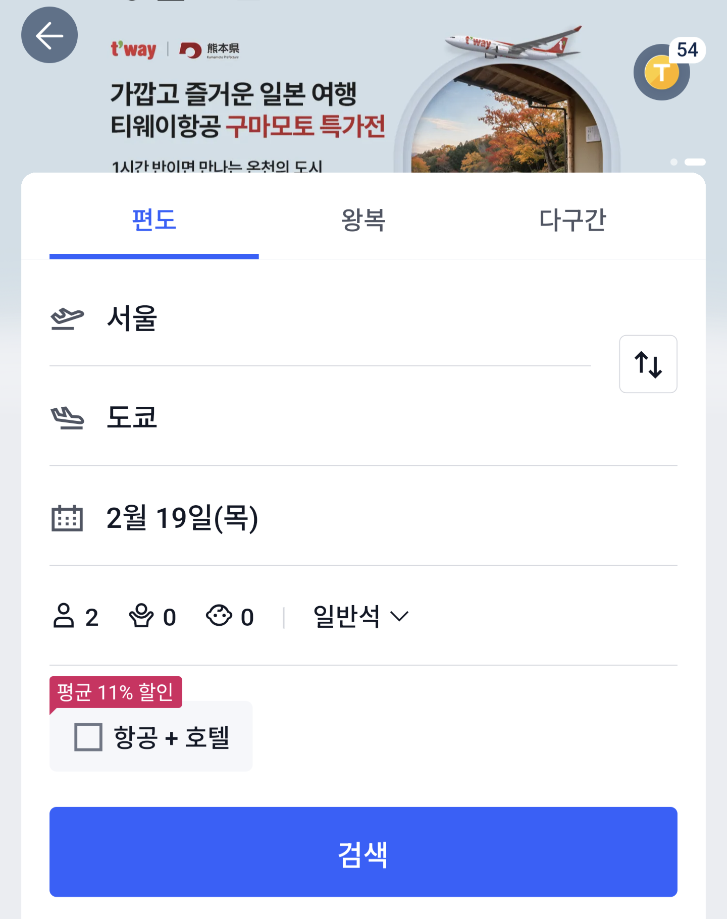 가장 빠르고 확실한 방법은 시간 맞춰 검색하고 바로 예약을 진행하는 겁니다. 깜작딜은 꼭 이벤트 페이지에서 예약을 해야할 필요가 없습니다. 이 시간에 해당 노선 검색하면 특가가 노출됩니다.