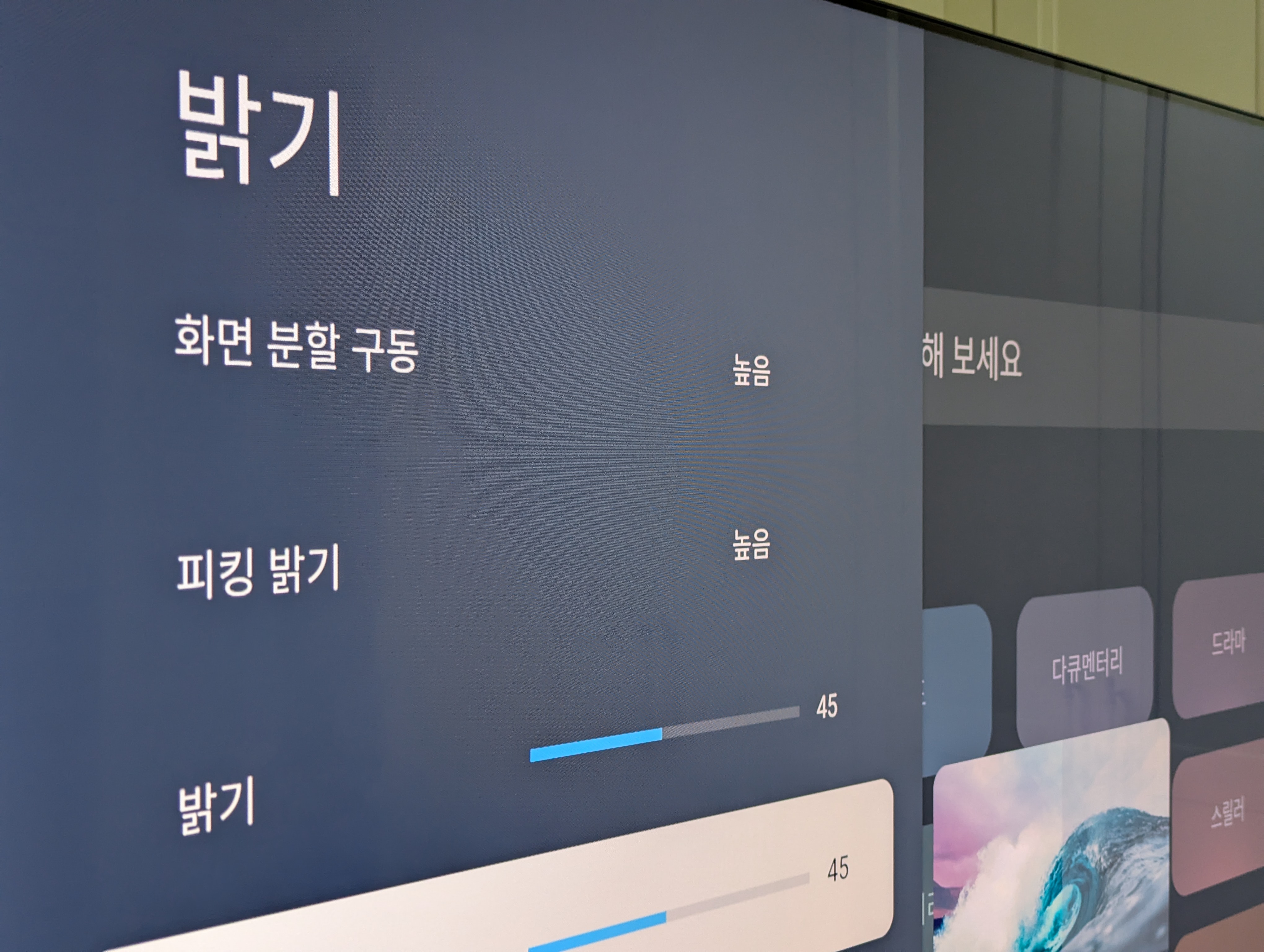 일부 후기에서 TCL 제품은 최적의 화면 설정을 위해 여러 옵션을 직접 조절해야 한다는 이야기를 들었는데, 하이센스 65U7N은 특별히 설정을 건드리지 않아도 출고 기본 세팅만으로도 충분히 만족스러운 화질을 보여주었습니다. 사용자마다 선호하는 화질이 다르겠지만, 저는 별다른 조작 없이도 편안하게 시청할 수 있었습니다.