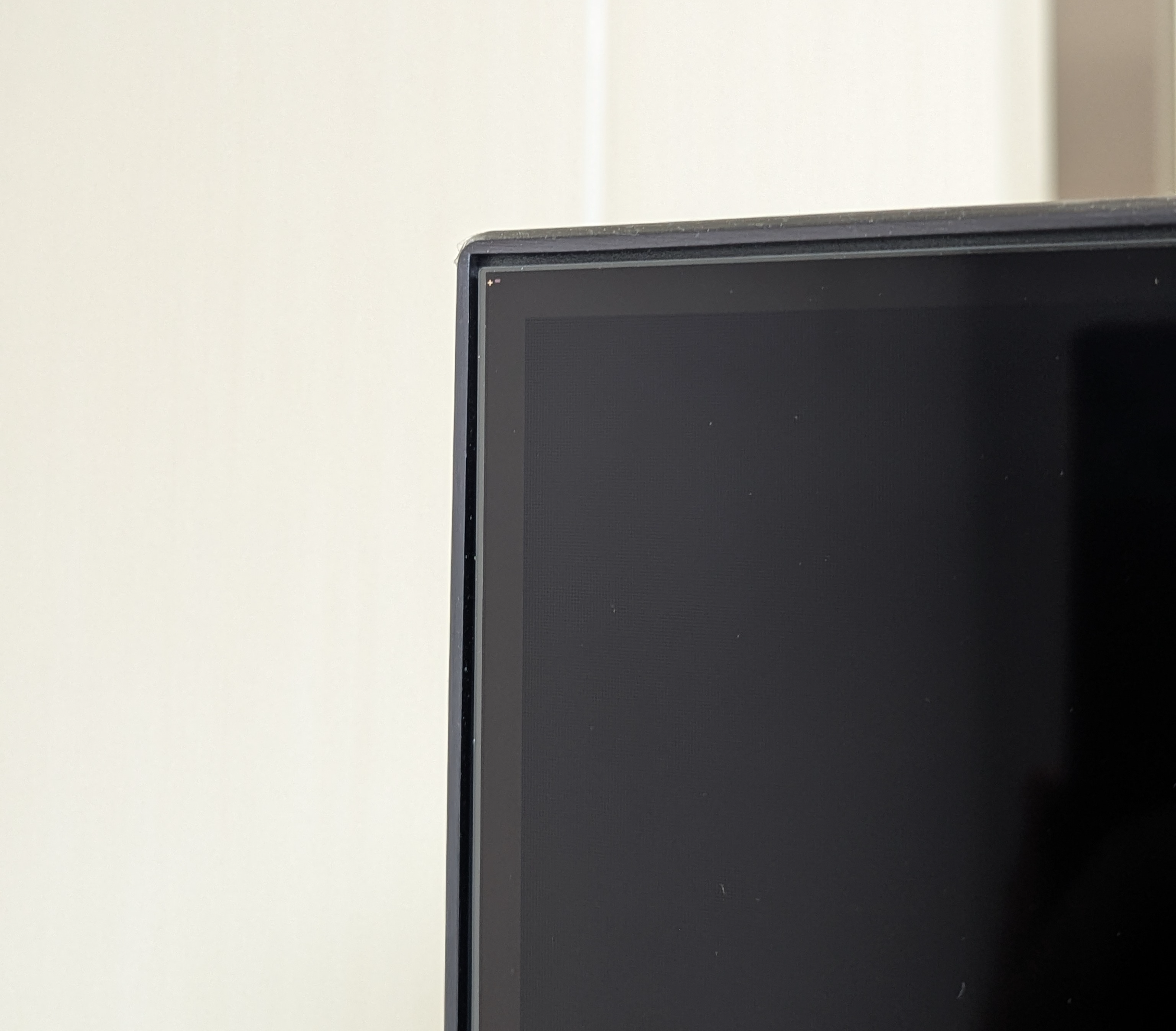 빛 반사 부분도 걱정과 달리 문제 없었습니다. 밝은 조명이나 햇빛 아래서도 화면에 제 모습이 비치거나 주변 환경이 반사되는 경우가 거의 없습니다. 빛 반사가 없다고 봐도 무방할 정도의 뛰어난 안티글레어 성능을 가지고 있습니다. 또한, TV 베젤 마감이 단순 유광 플라스틱이 아닌 무광으로 처리되어 있어서 디자인적으로도 매우 만족스러웠습니다. 저렴해 보이지 않고 깔끔한 인상을 줍니다.