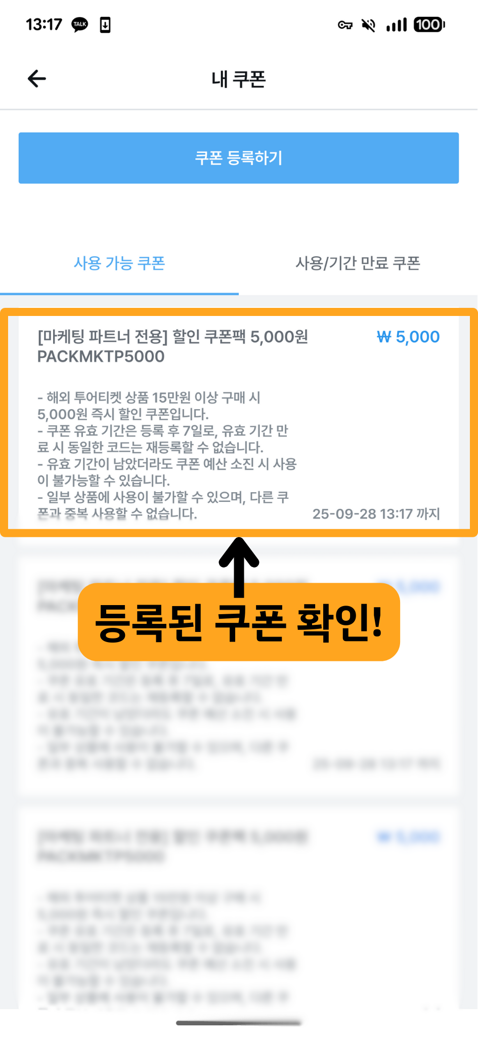 Step 2. '사용 가능 쿠폰' 목록에서 내가 등록한 쿠폰들을 모두 확인할 수 있습니다.