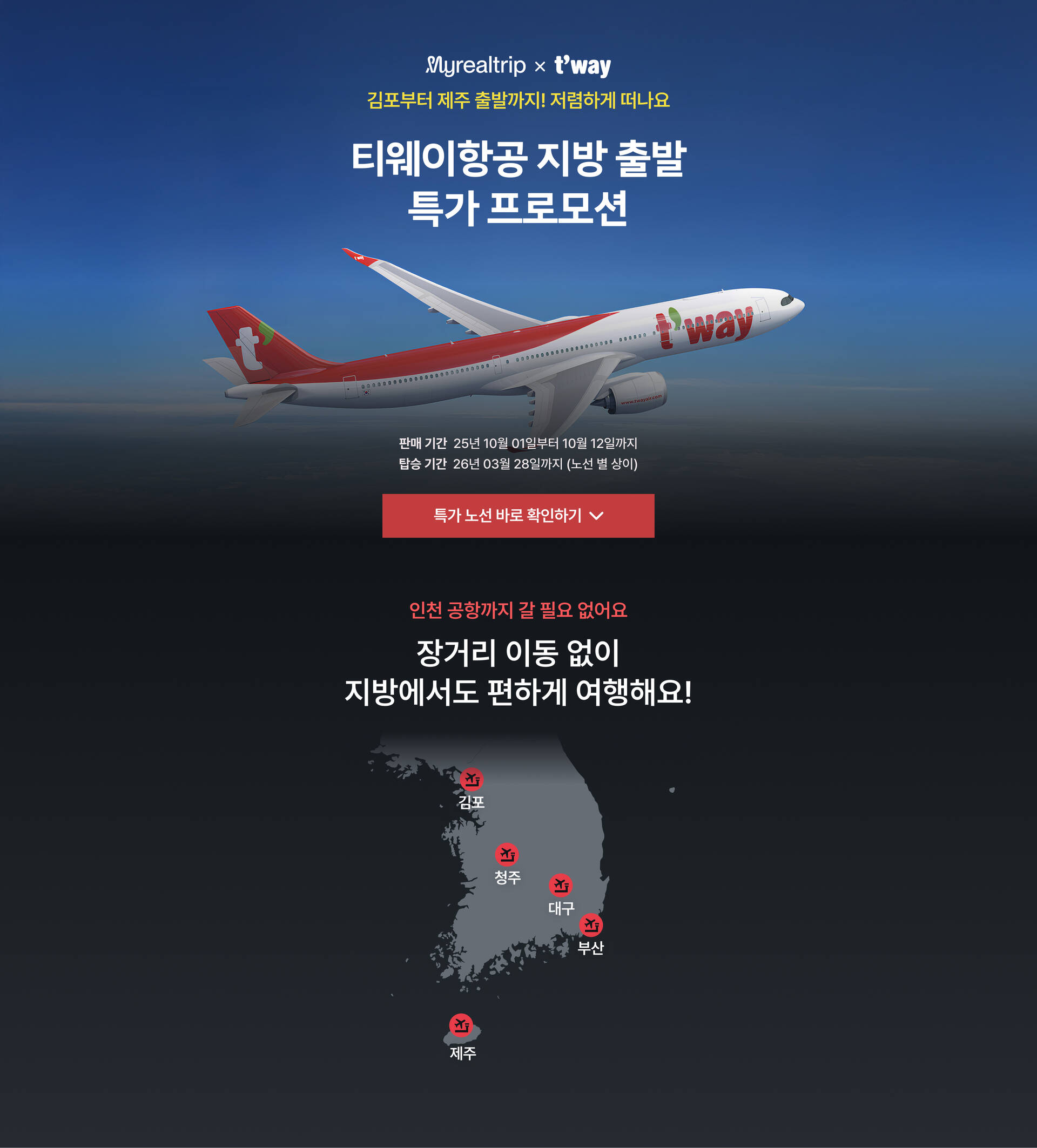 ✈️ 티웨이항공 | 지방 출발 특가 프로모션 (~10/12)