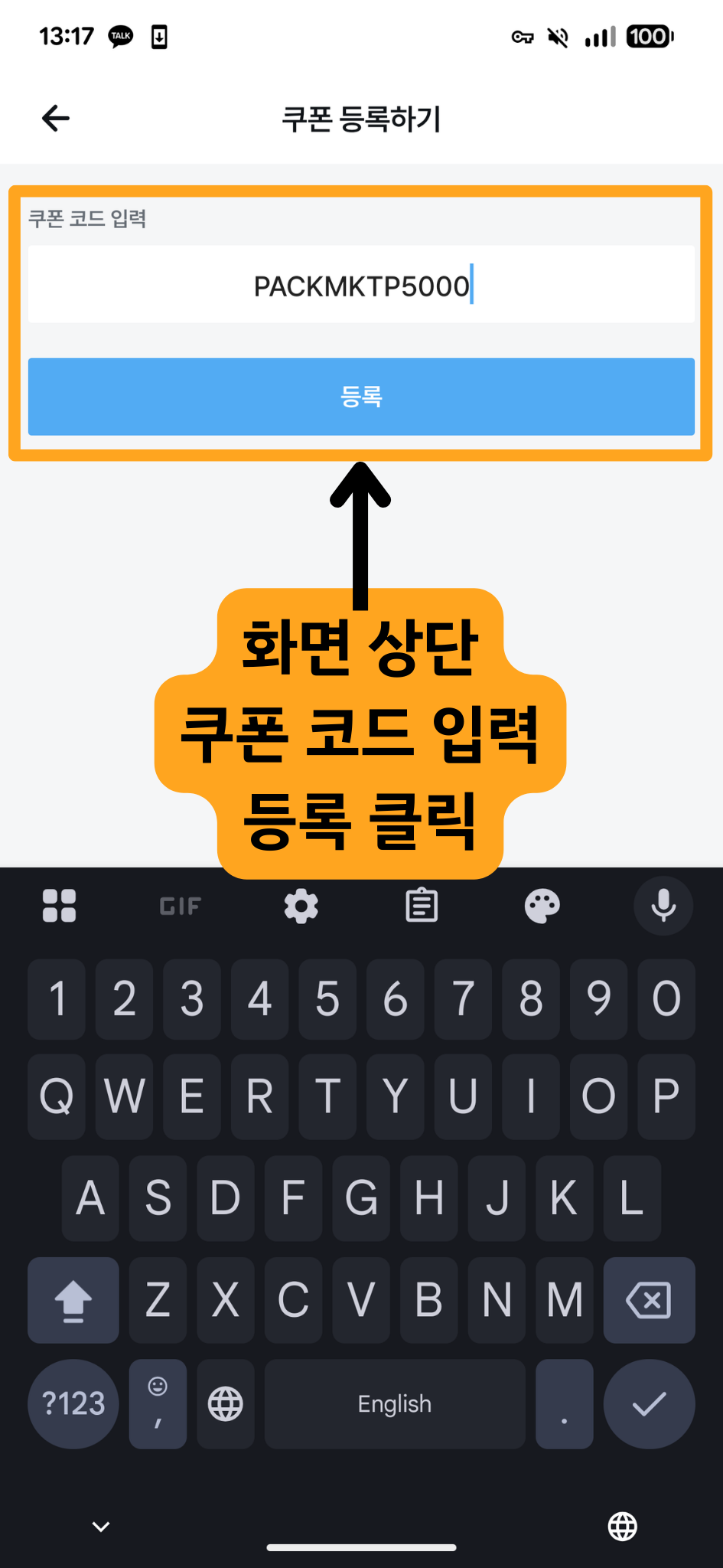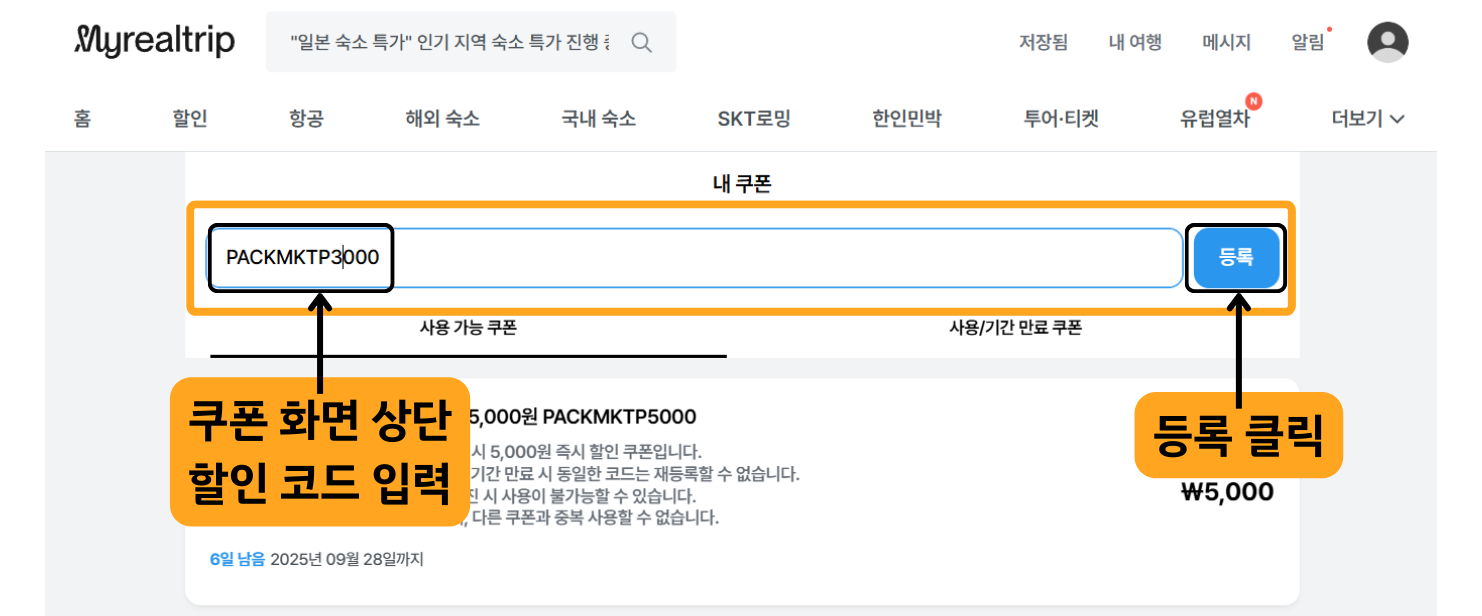 - 주황색 '쿠폰 등록 페이지로 바로가기' 버튼을 클릭합니다.