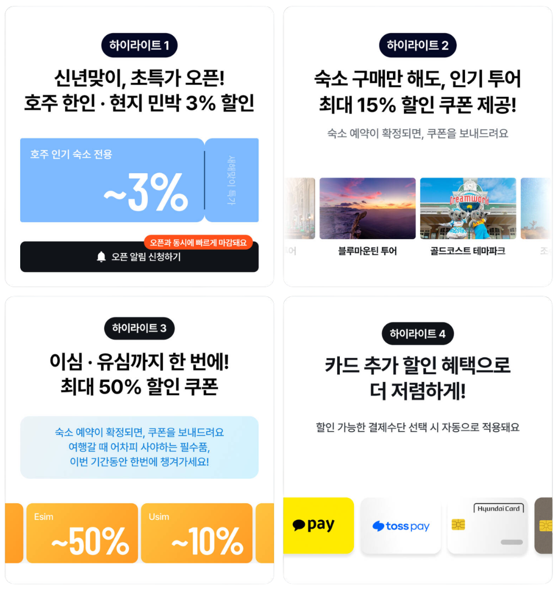 하지만 아래 호주 한인민박과 미국 설 프로모션은 여전히 진행 중이니 놓치지 마세요!