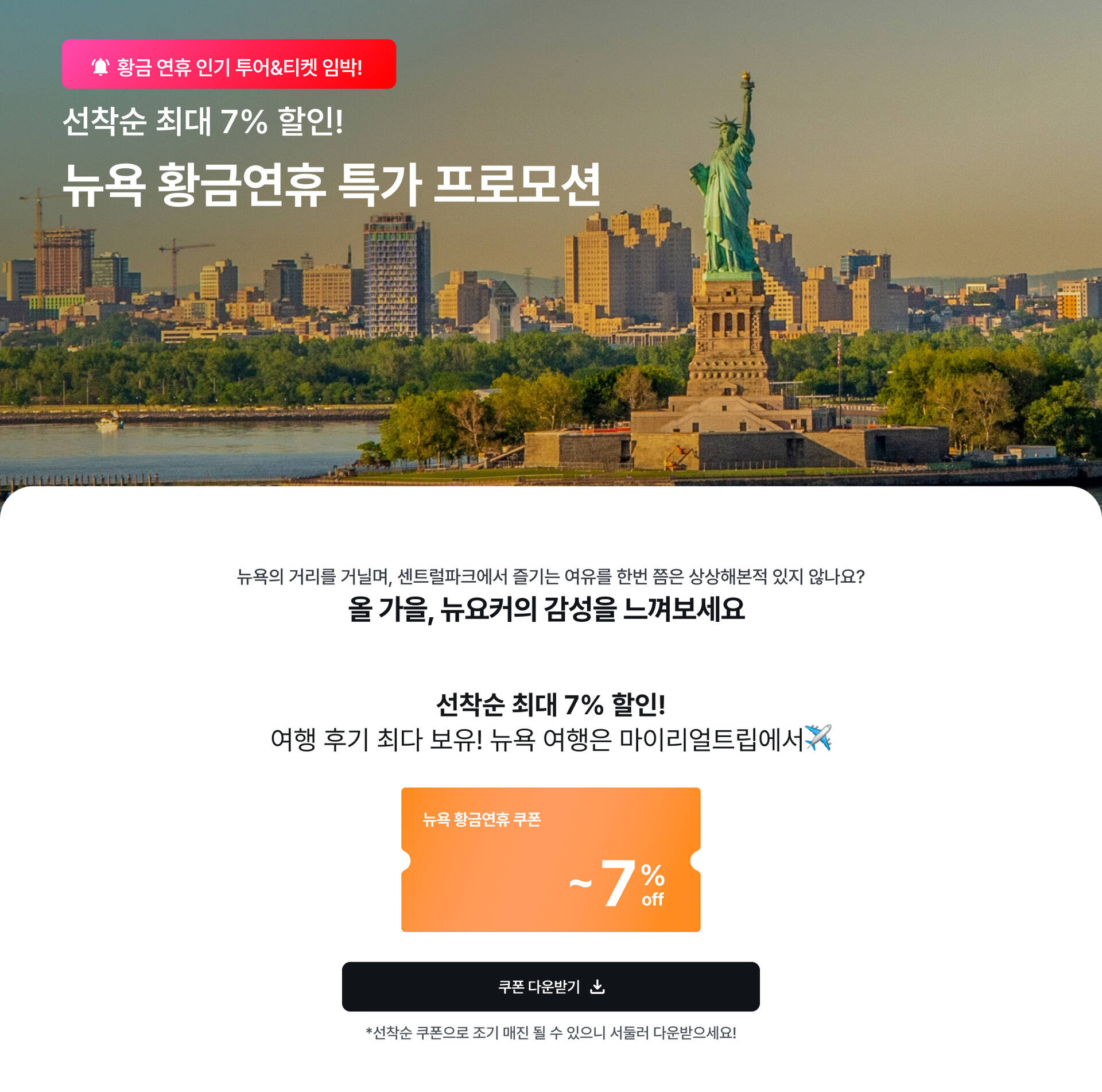 🇺🇸 뉴욕 | 황금연휴 7% 할인