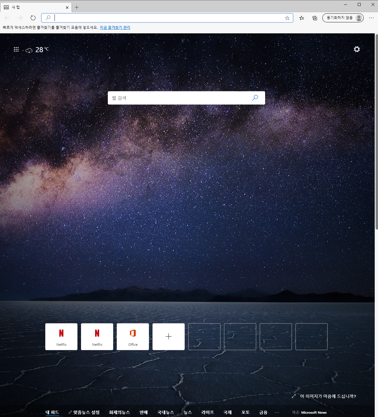 아마 엣지에 구글 로그인을 안시켰으면 아래와 같은 화면이 나올 것이다.