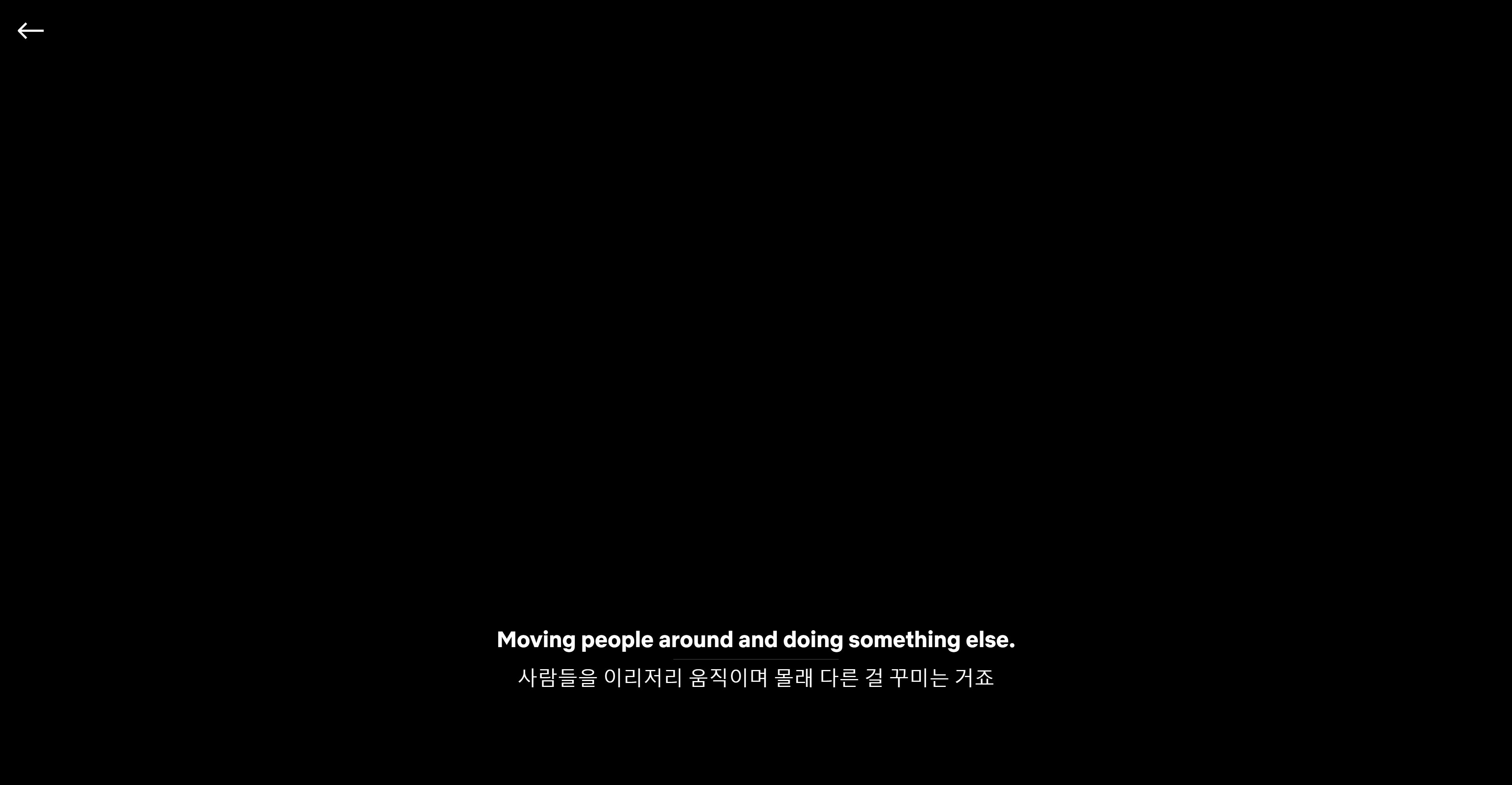 아무 영상이나 틀면 위와 같이 영어와 한글이 같이 보이는 자막을 확인하실 수 있습니다. 캡쳐는 넷플릭스의 정책상 화면 캡쳐가 안되어 까맣게 나오는 점 양해바랍니다.