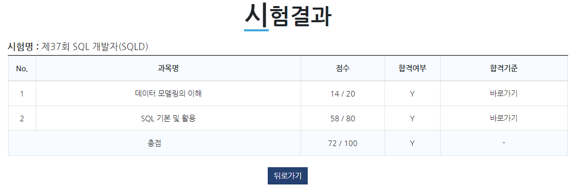 2020년 5월 31일 열린 37회 SQLD 시험을 합격했다.