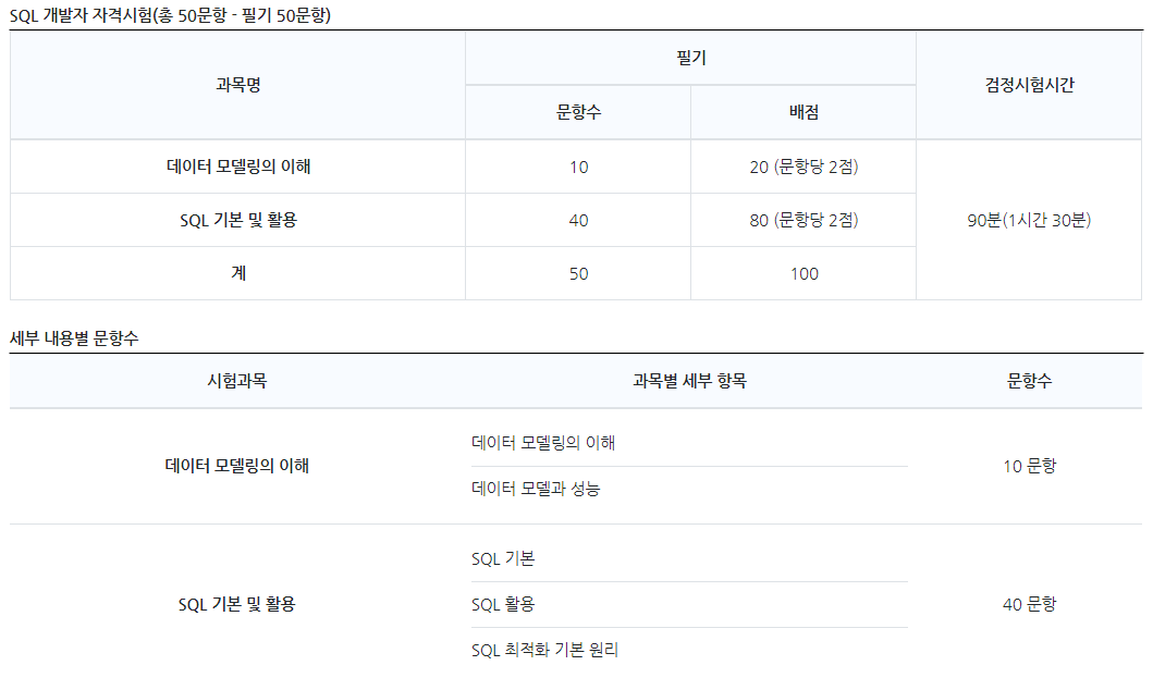 - 나같은 경우는 1주 준비했는데 SQL문을 써본 적이 없으면 3주정도 하는게 좋을 듯 하다.