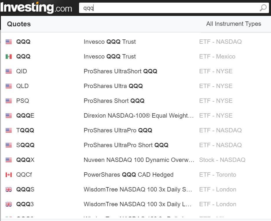 문제는 QQQ를 사겠다고 검색을 하면 아래처럼 많은 상품이 나오는데 그 차이에 대해 설명해볼까 한다.