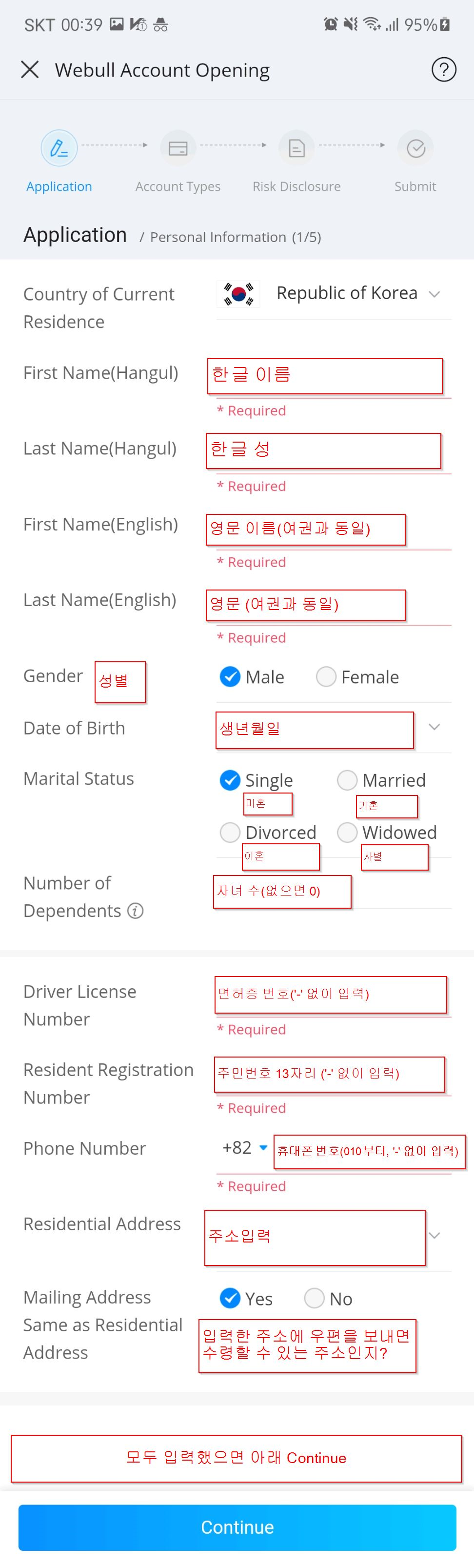 주의 - Webull은 미국의 온라인 금융 서비스 회사이지만 알리바바 그룹에 속한 중국 회사다. 요즘 알리바바그룹과 중국 당국과의 마찰 같은 부분으로 개인정보 입력이 꺼려진다면 비추한다. 난 예전에 모르고 만들었음
