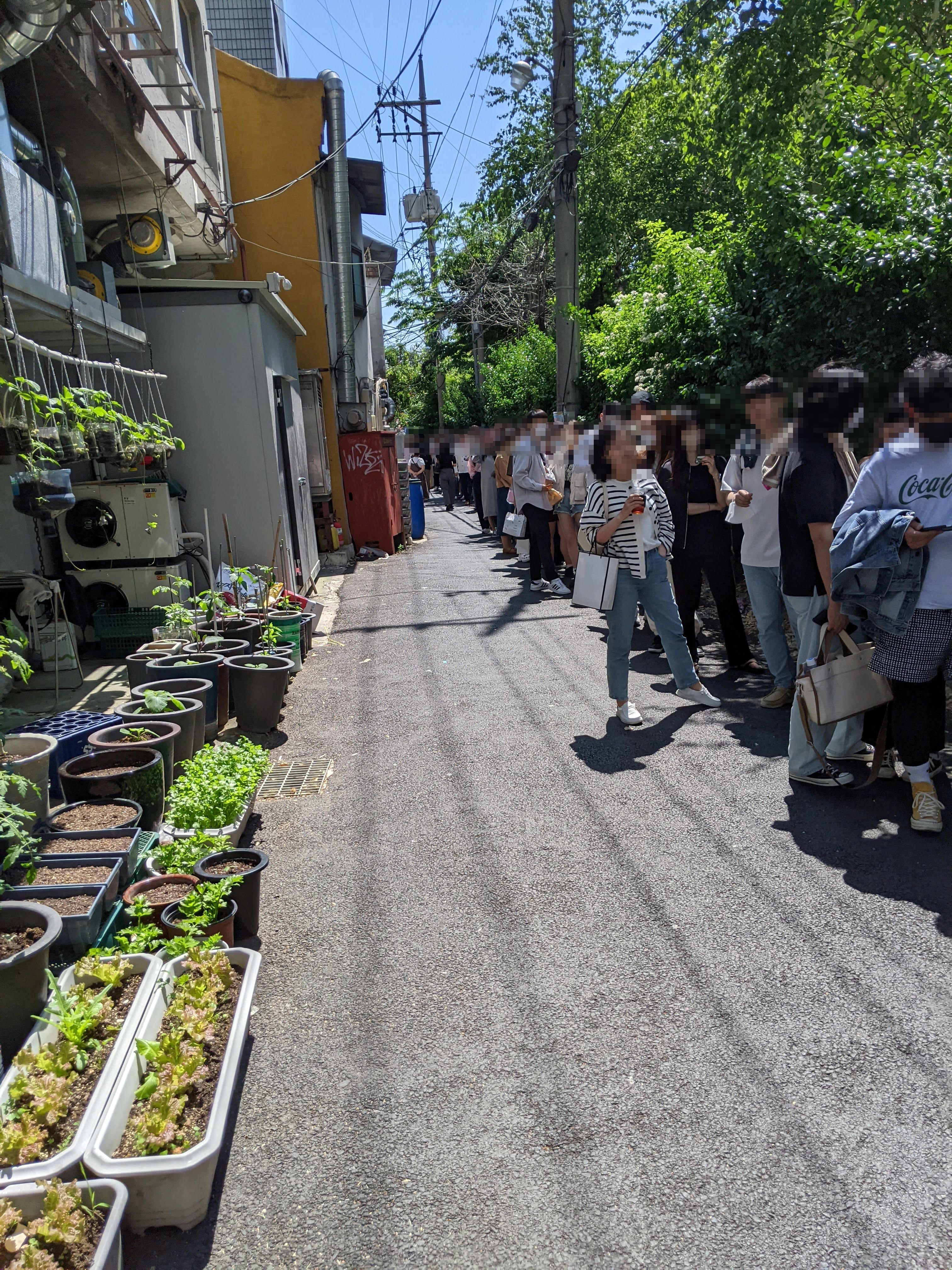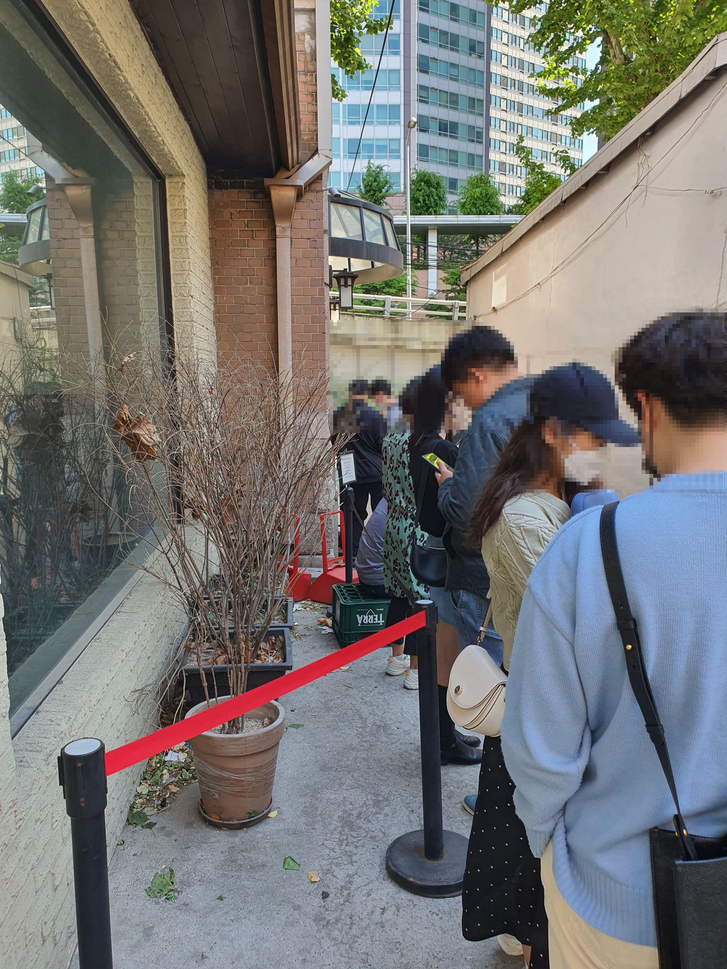 내 앞 사람들. 8팀 정도 되는 것 같았다. 9시 20분 ~ 10시 30분 사이에 대부분의 사람들이 몰려오고, 그 이후에는 발걸음을 돌리는 사람들도 있었다. 당일 식사 예약을 받는 건 11시부터고, 12시부터 점심식사가 가능하다.