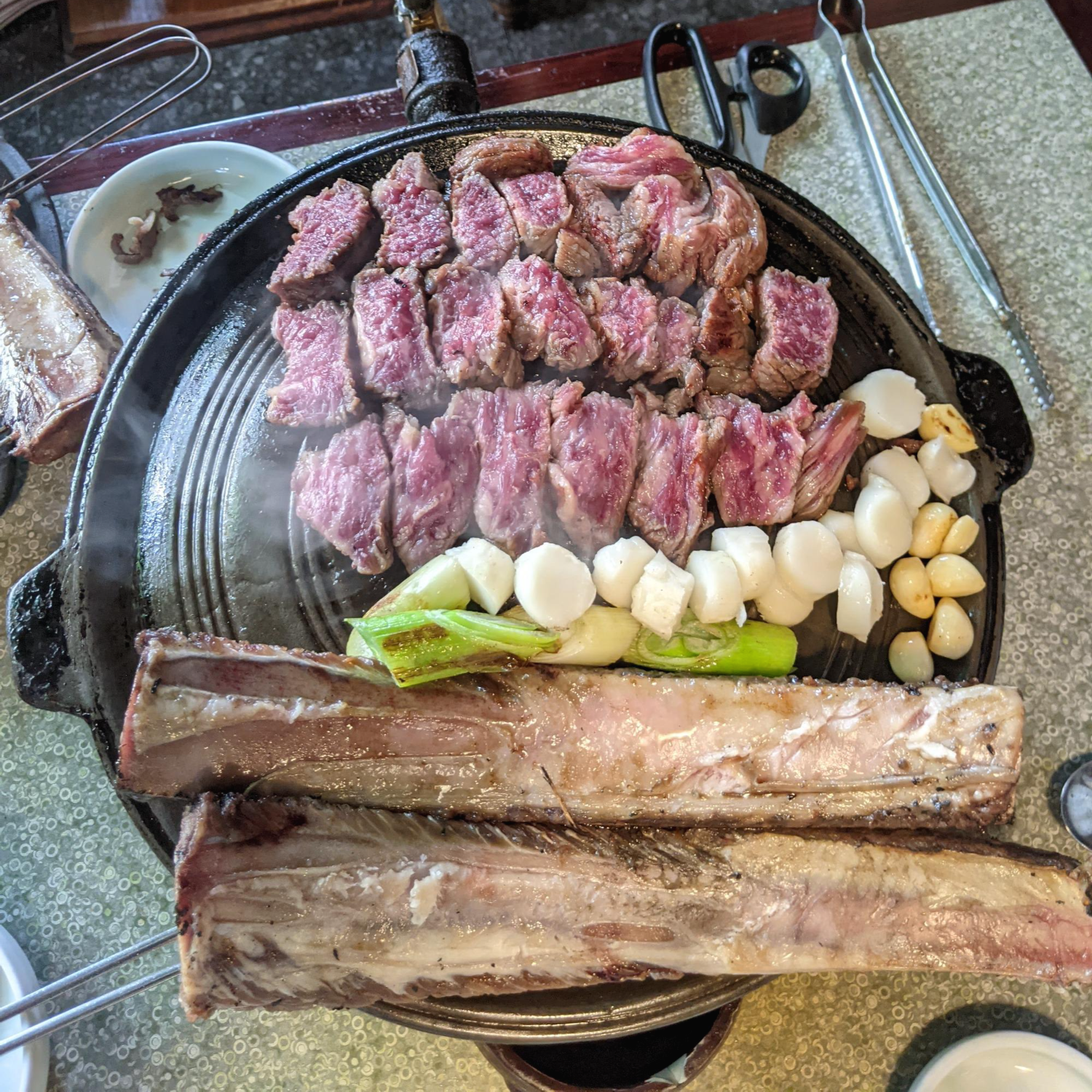 미국산 우대갈비 7인분 (280g*7, 28,000*7). 사진은 5인분이고, 나중에 2인분 더 시켰다. 이거 하나 바라보고 와서 9시부터 줄서서 먹는다.