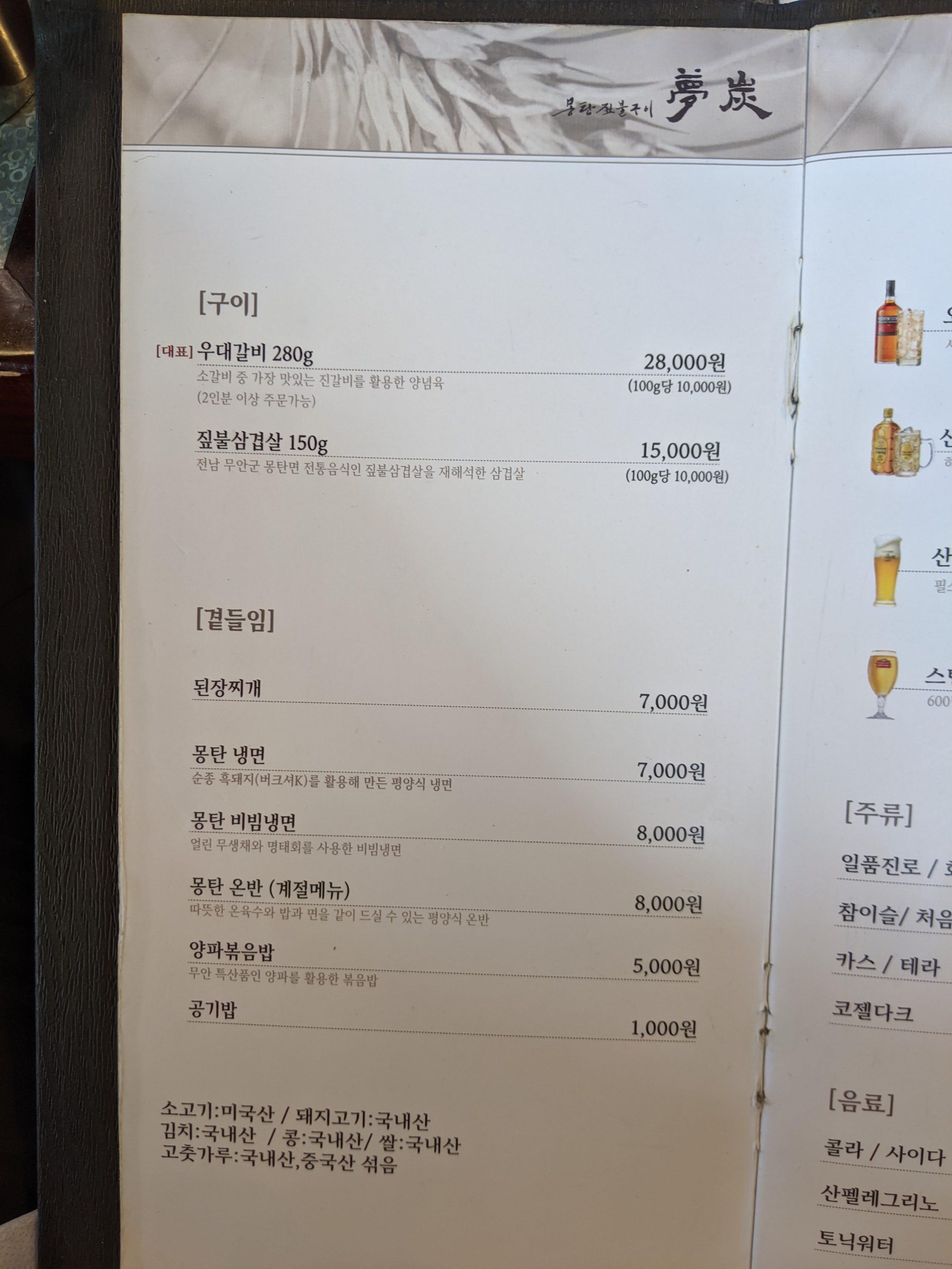 몽탄은 워낙 유명하기 때문에 가게 설명은 패스하고, 실제 방문해서 주문한 것과 느낀 점부터 요약해 설명하자면