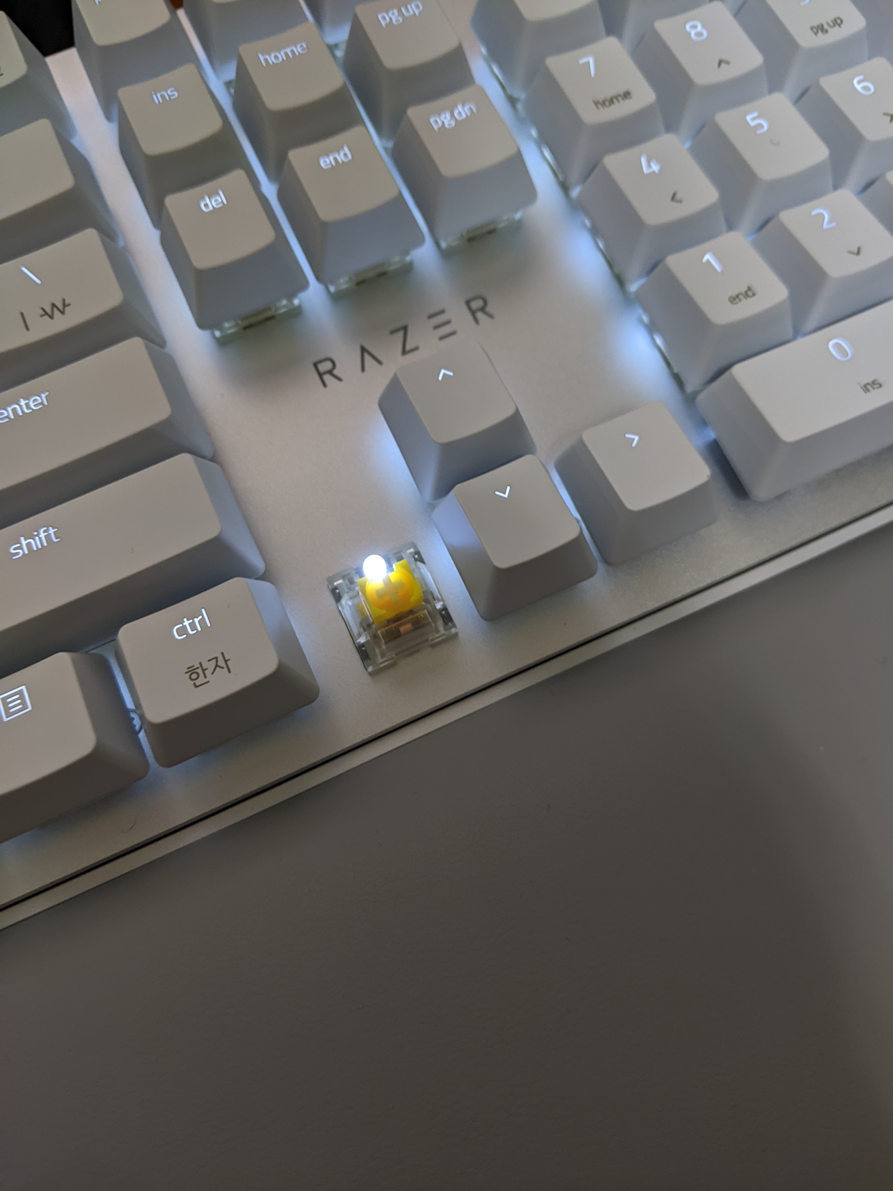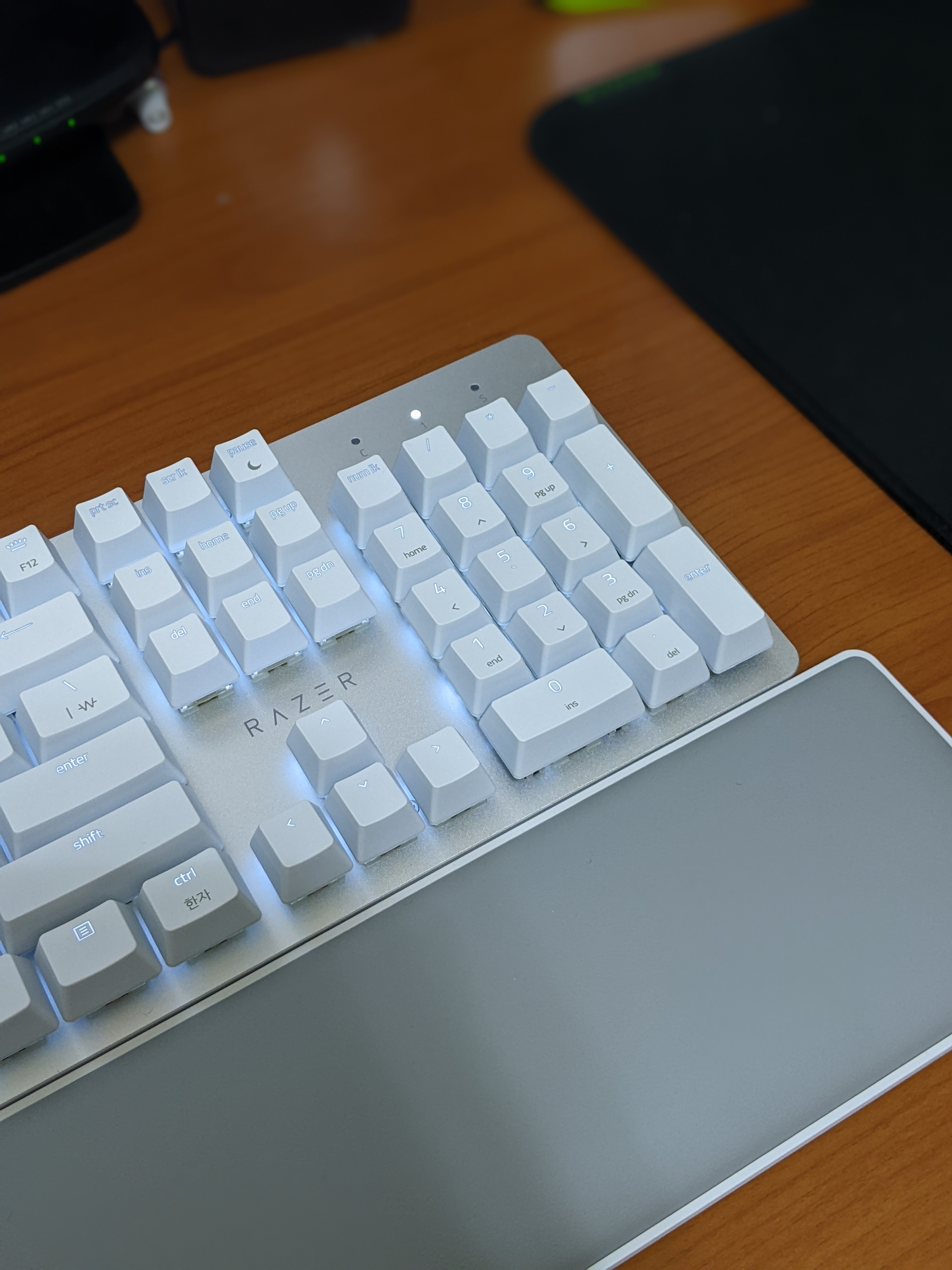 프로타입과 큰 차이가 없기 때문에 여전히 예쁘고 한글 각인이 추가되어 있다. (참고로 키보드 옆에 있는 마우스 패드는 레이저 스트라이더, 이것도 리뷰 예정이다)