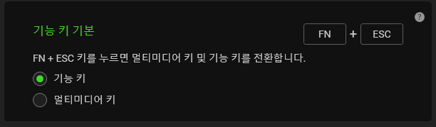 F1~F12 키가 멀티미디어 키가 우선이었던 프로타입 울트라의 가장 큰 문제를 Synapse를 통해 해결할 수 있다. 원래 있었던 기능인데 내가 못 찾은 것인지는 모르겠지만, 아무튼, Synapse에 '기능 키 기본' 부분을 보면 F1~F12 키의 기본 값을 F1~F12로 할 지, 멀티미디어 키로 할지 정할 수 있다.