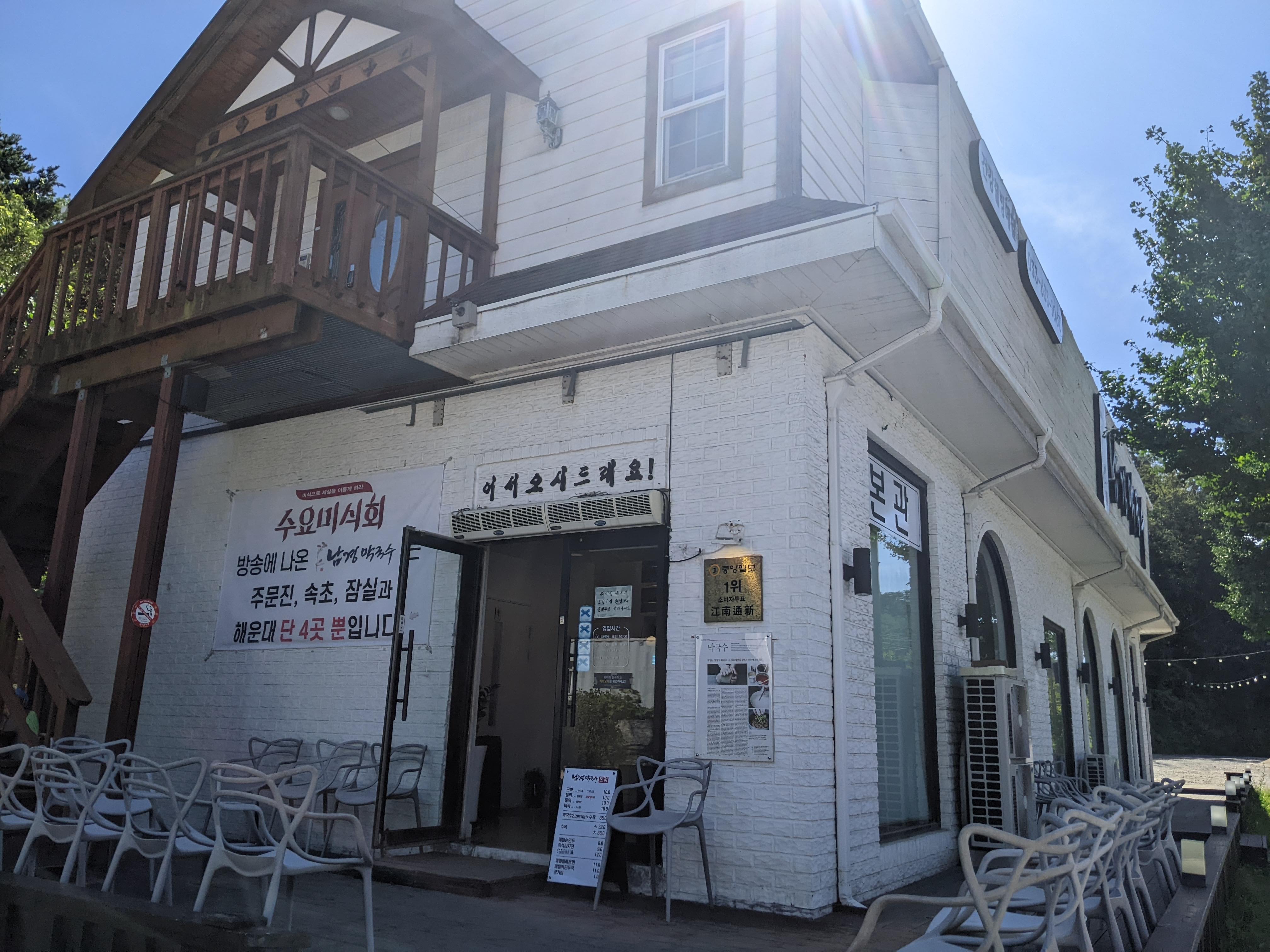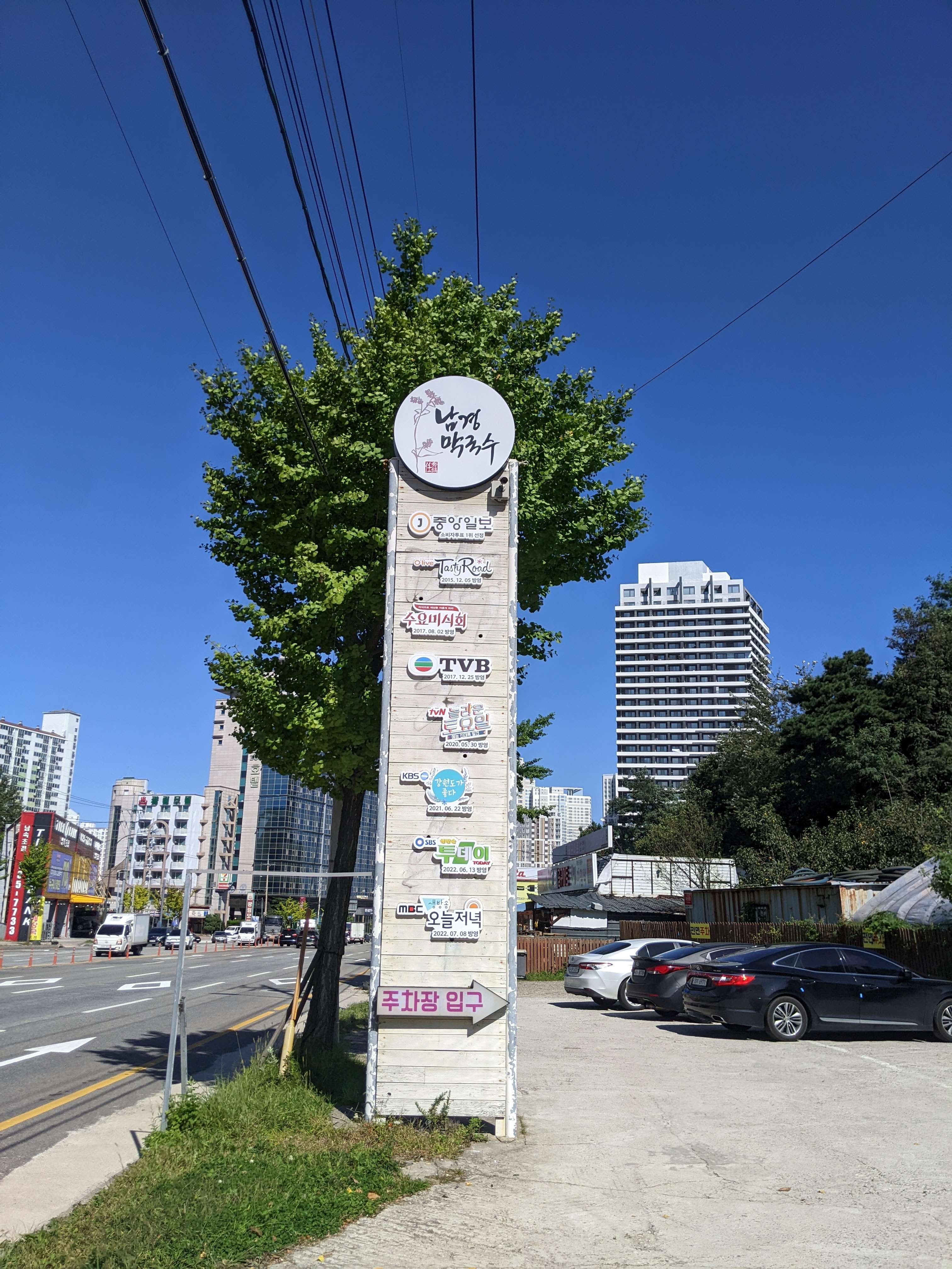 여기저기 방송사, 신문사에 나온 흔적들이 있다. 여행지에 있는 식당이니 만큼 주차 공간도 충분하고 야외 대기하는 의자들도 구비되어 있다.