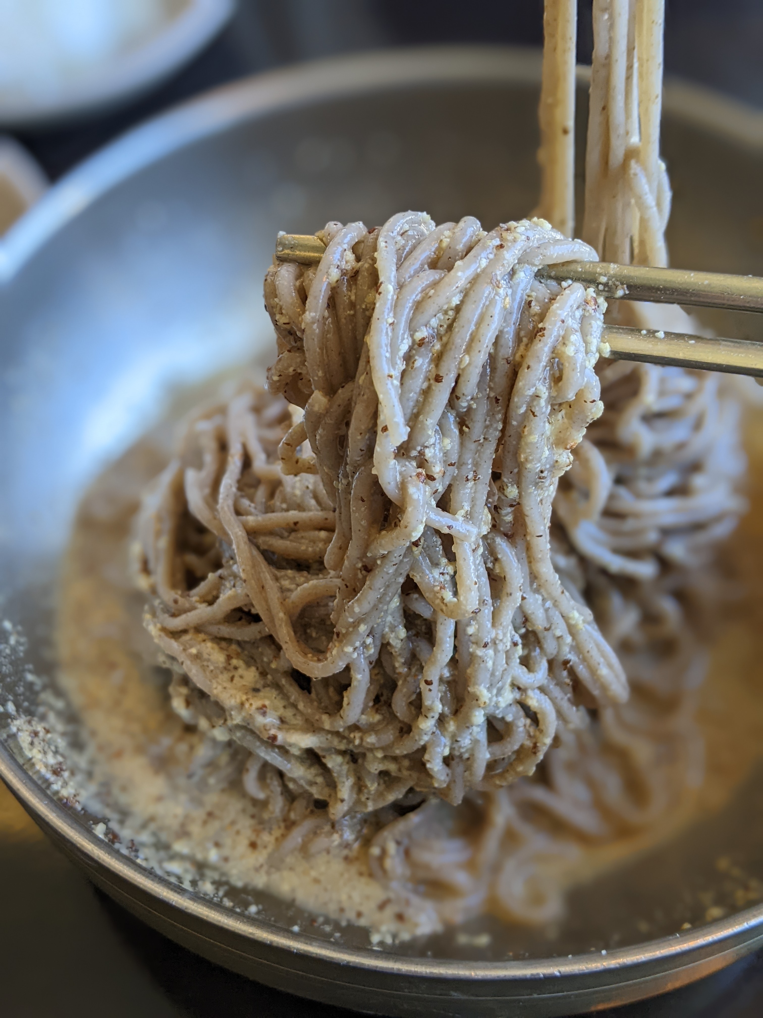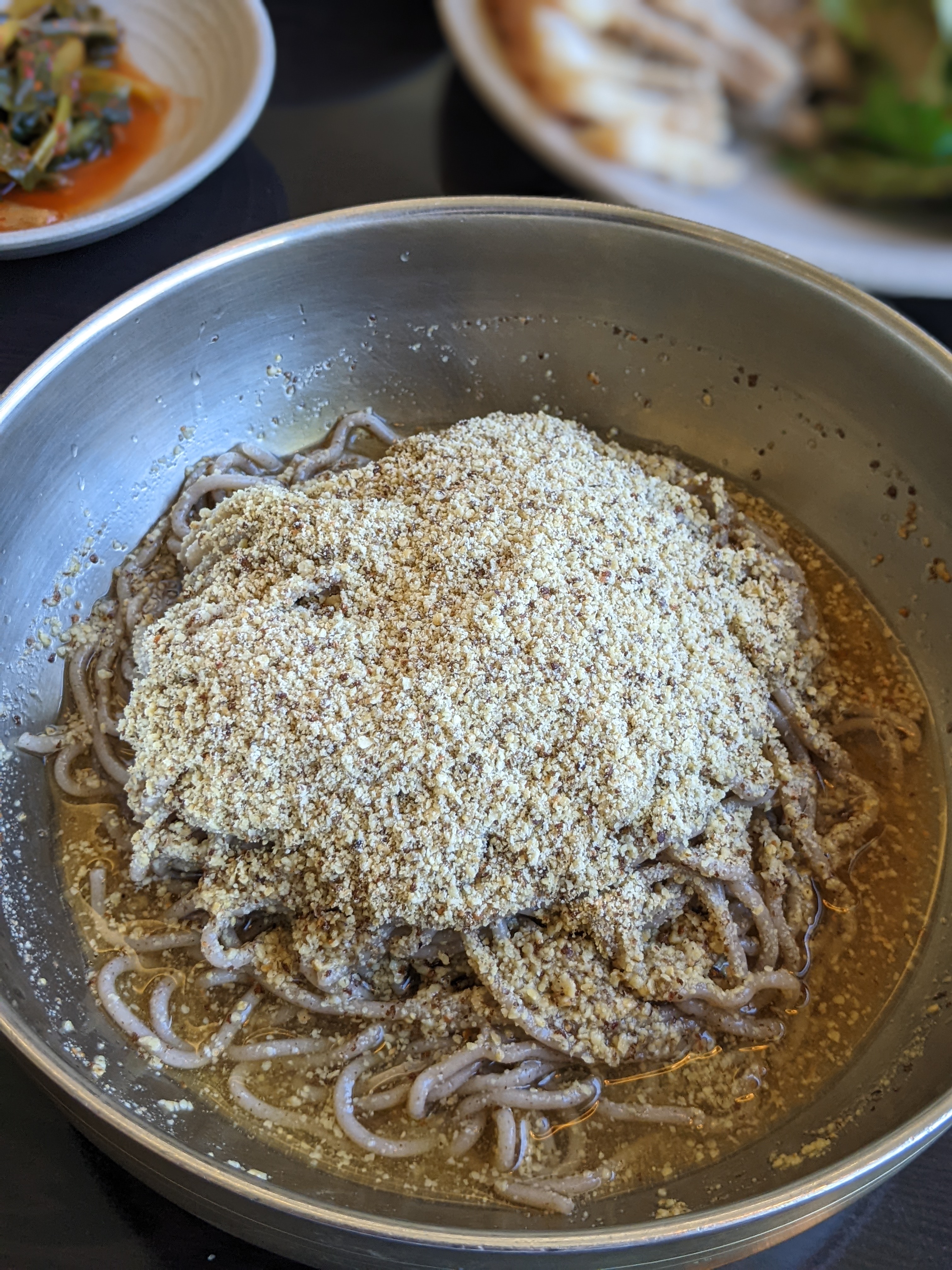 이 가게를 기대하게 한 메뉴는 이 들막이었는데, 들막은 예상만큼이나 맛있었고 추천할만하다. 콩국수와는 다른 고소한 맛이 있고 면의 식감도 굉장히 좋았다.