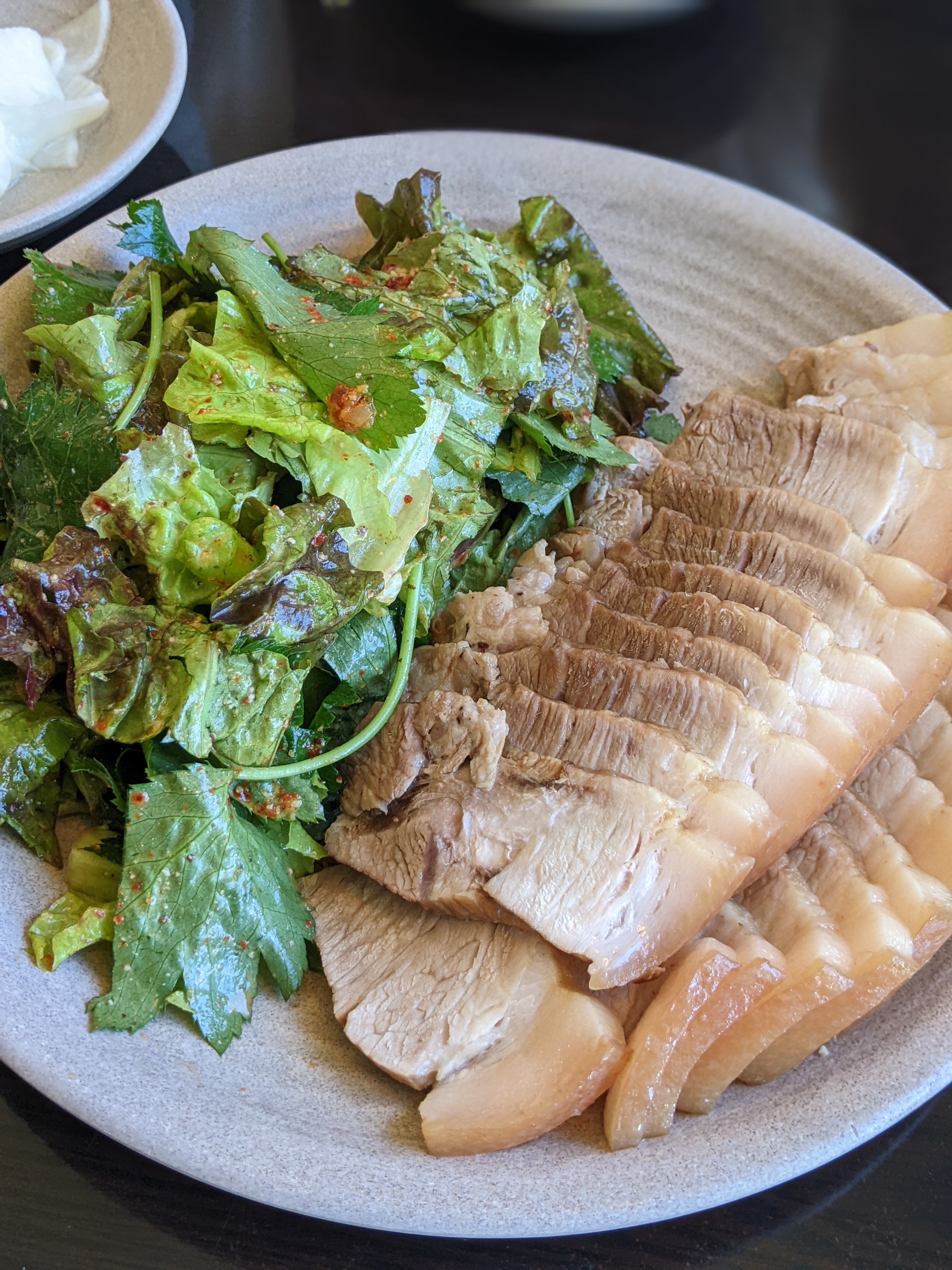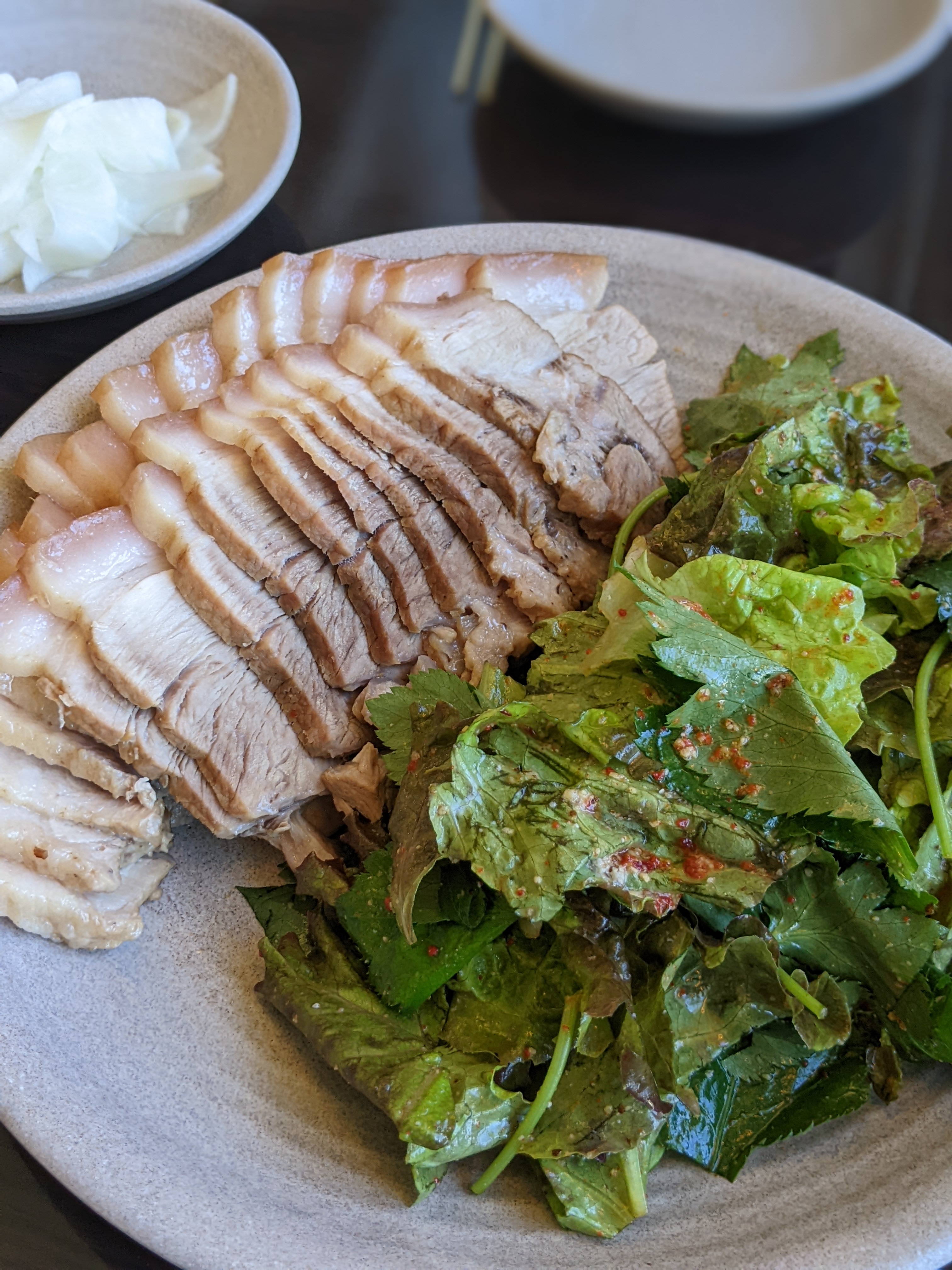 주문한 지 얼마 안 되어 수육이 바로 나왔다. 수육 특성상 주문 들어왔을 때 조리를 시작하면 너무 오래 걸리기 때문에 미리 삶아놓은 뒤, 찜통에 넣어두고 주문 들어오는 대로 꺼내주는 방식이라 바로 나온다.