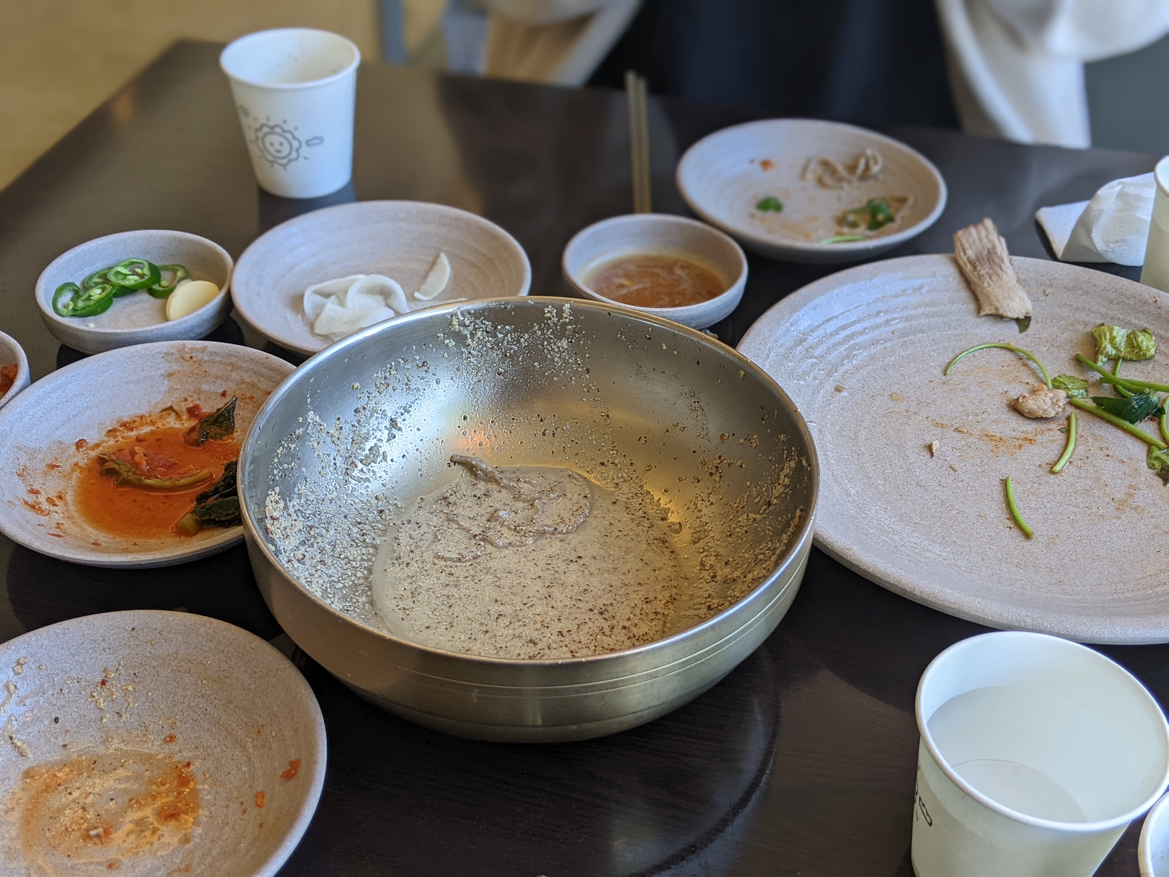 수육이랑 같이 먹기도 해서 그런지 약간 느끼한 감도 있었는데 밑반찬으로 나온 열무김치를 곁들여 먹으니 느끼함을 잘 잡아주었다.