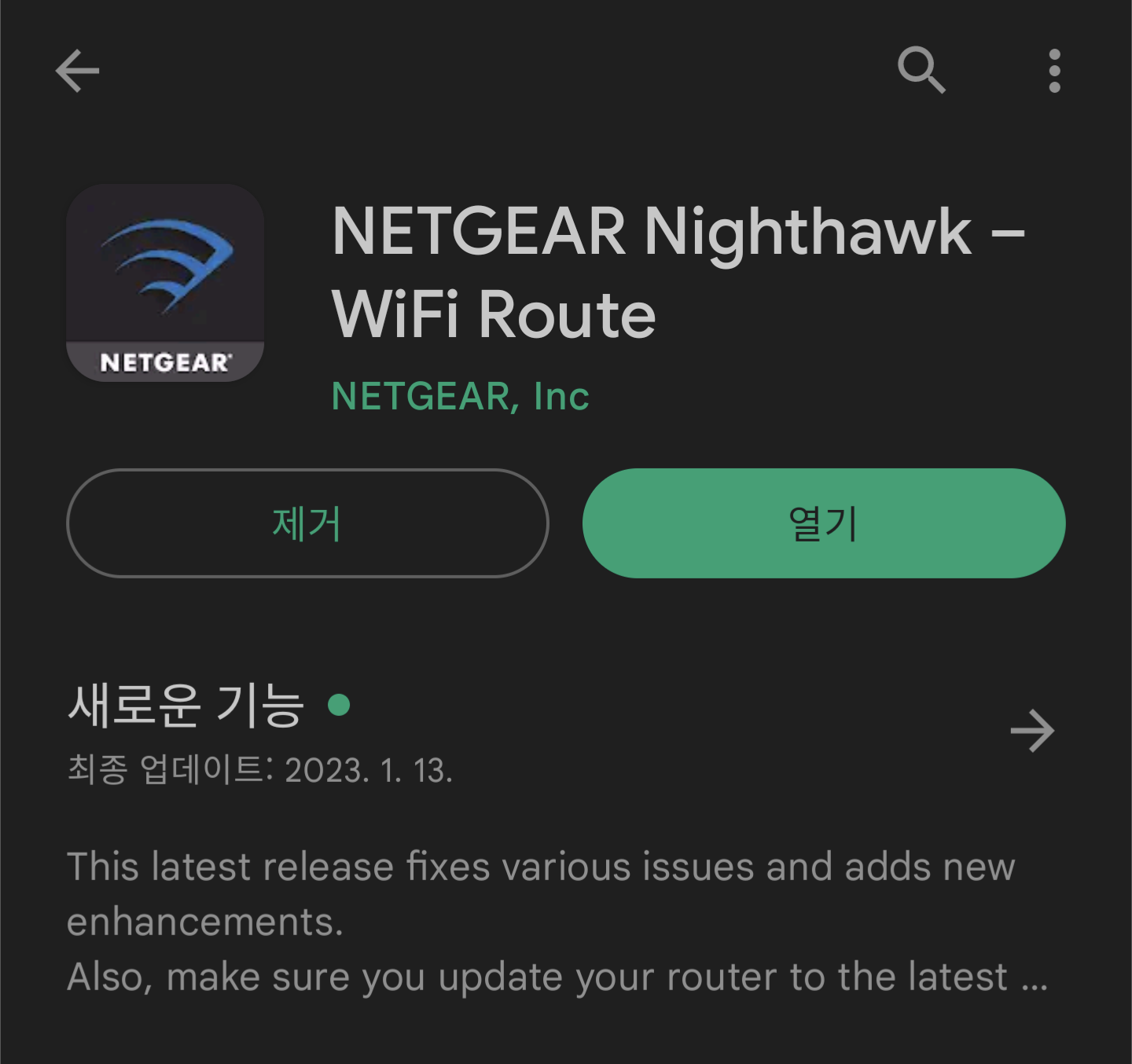 바로 나이트호크 앱 설치. 구글플레이스토어에 설명은 영어지만 연동 이후 앱 사용은 한글 지원이 된다.