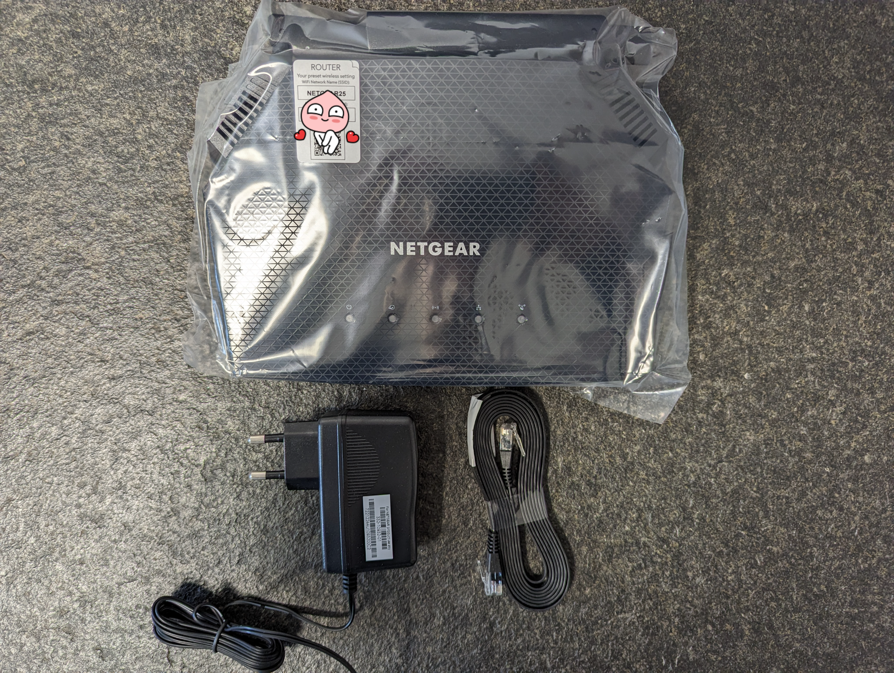 설명서 외 구성품은, 공유기, 어댑터, CAT.5E랜 케이블이다. CAT.5E로도 공유기 스펙을 다 쓸 수는 있지만, CAT.6가 아닌 점은 왠지 모르게 아쉽다.